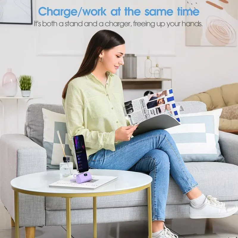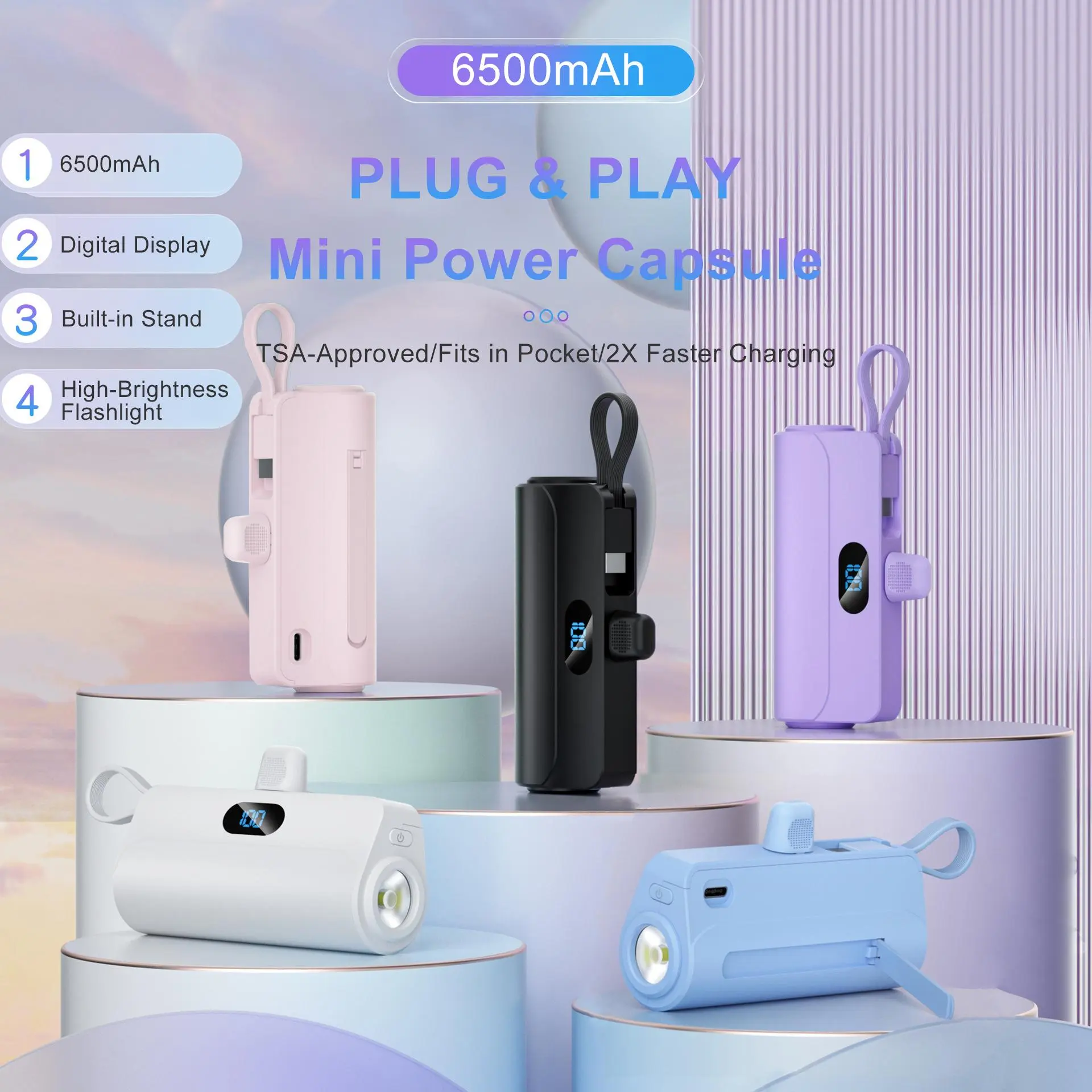 Mini Capsule Power Bank 6500mAh | 22.5W Fast Charge Portable Charger with Stand, Dual USB-C for iPhone & Android
