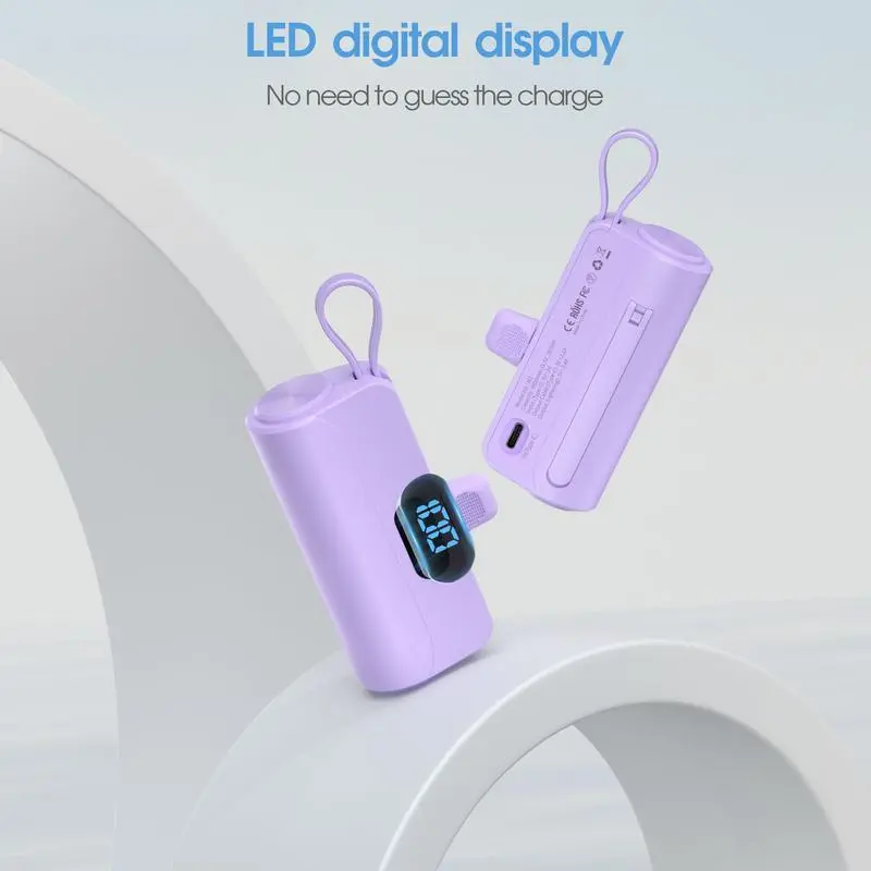 Compact yet powerful, this power bank features a digital screen display showing the remaining power percentage. It's compatible with iPhone 16/15/14/13/12 & Android devices. The design focuses on functionality and portability, making it ideal for everyday use.