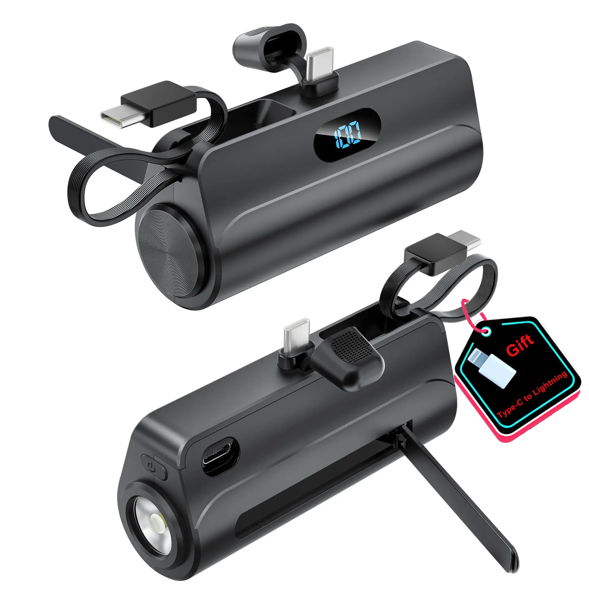 Power on the go! This 6500mAh power bank offers dual USB-C ports for fast charging. It supports 22.5W fast charging, ensuring your devices are powered up quickly. The built-in phone stand and flashlight add convenience. Comes with a USB-C to Lightning adapter for compatibility.