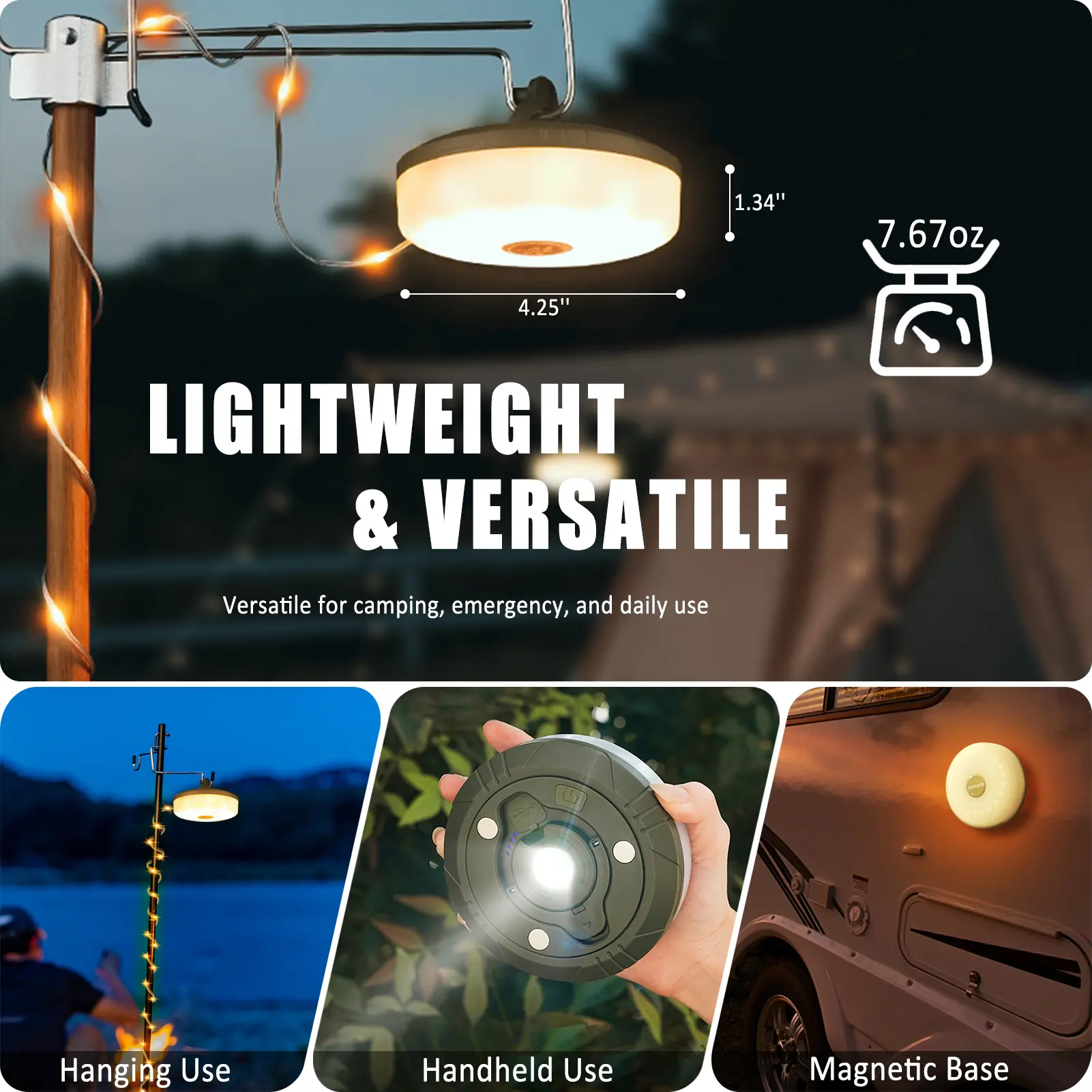 Versatile for camping (tent setup), backyard gatherings, garden decor, hiking, holiday/Halloween parties, and emergency lighting. Compact, foldable, and essential for outdoor enthusiasts and home emergency kits.