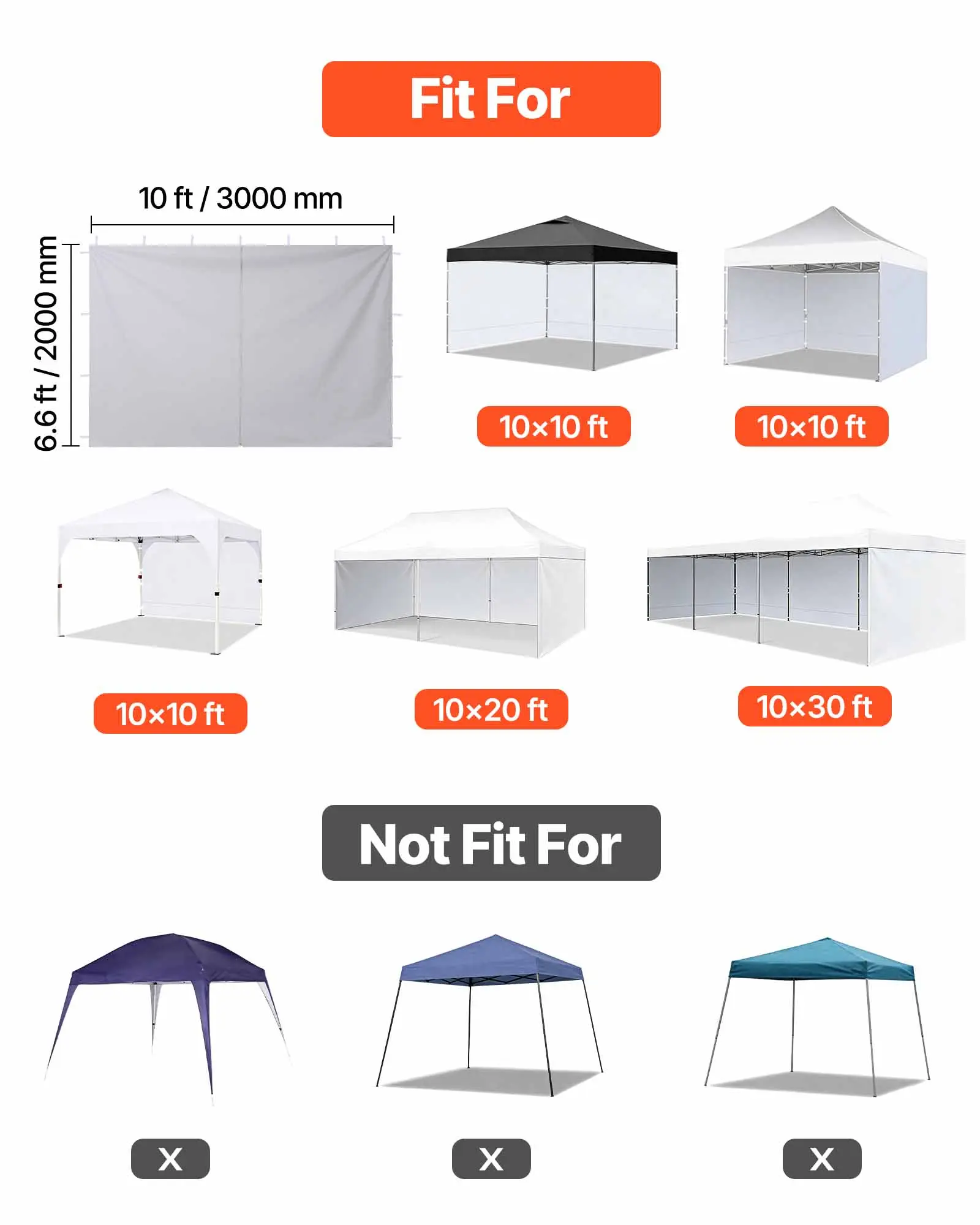 Universal Fit: Each sidewall measures 200 x 300 cm (6.56 x 9.84 ft). Our canopy sidewalls are suitable for most standard 10 x 10 ft straight-leg pop-up canopies