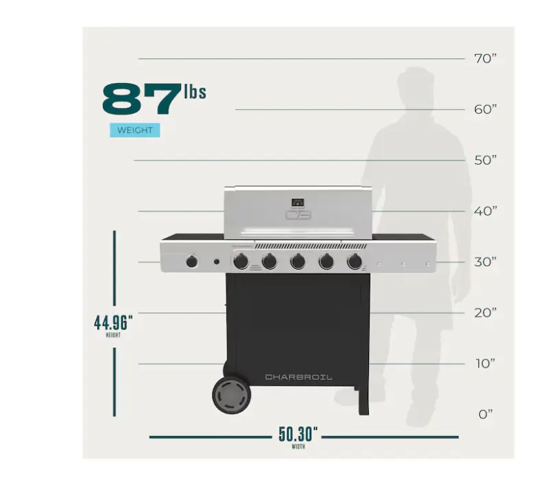 This grill features a robust 5-burner setup, ideal for large gatherings. It provides ample cooking space for multiple dishes simultaneously. Perfect for family events or parties, this grill ensures everyone gets their favorite meal.