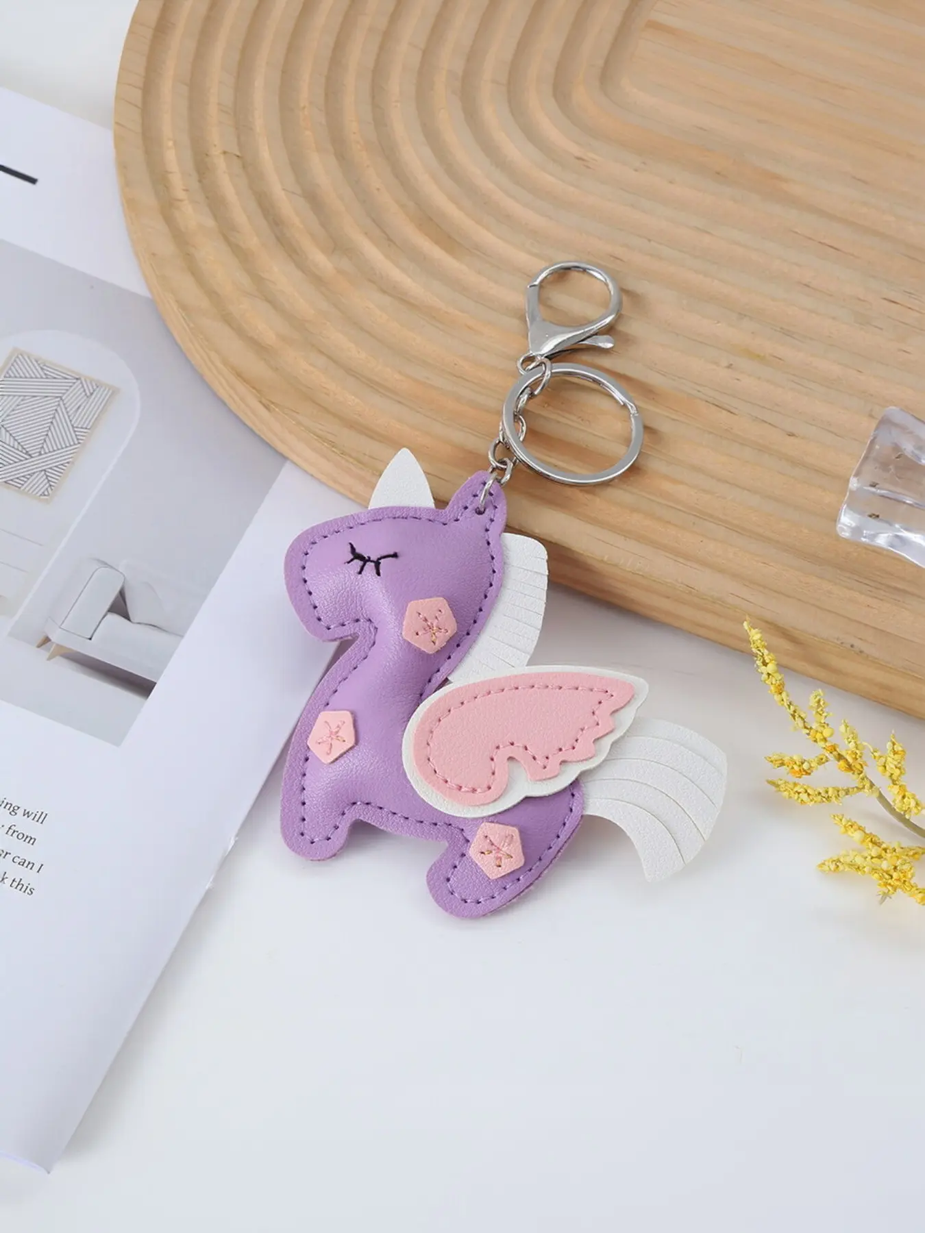 Cute Creative Wings PU Leather Keychain, Cartoon Horse Bag Charm, High-Quality Accessory, Perfect Gift Idea