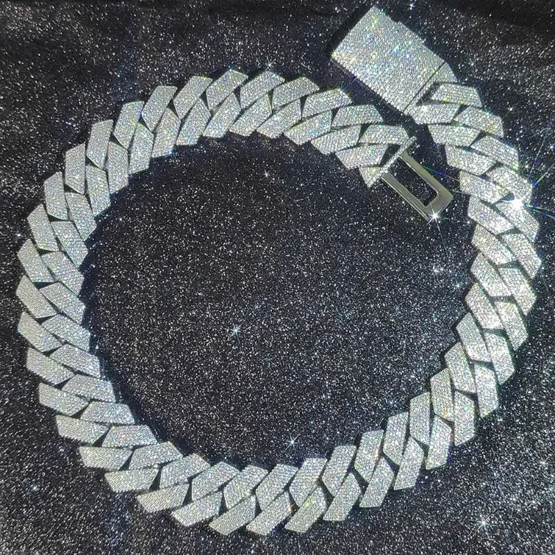 Pass Diamond Test GRA Moissanite 25mm Wide 6Rows Solid Silver Cuban link chain for Rapper Hip Hop VVS Iced Out Necklace.
