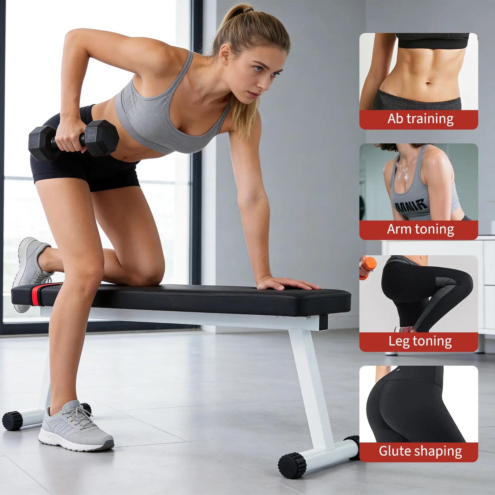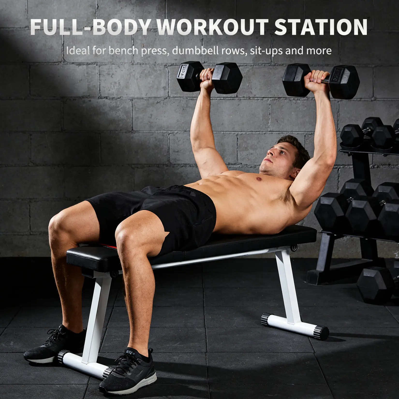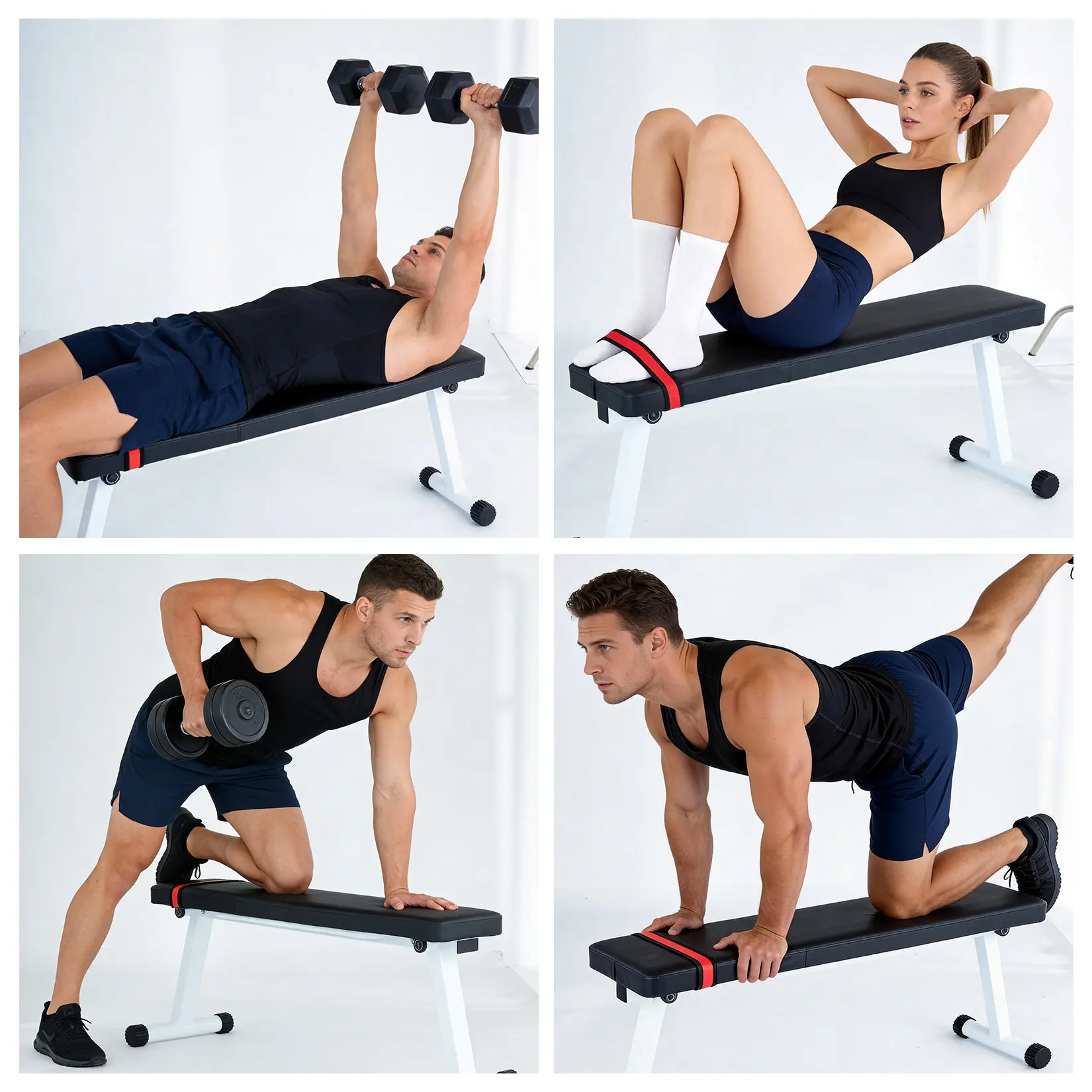 ·Full-Body Workout Versatility;Perfect for flat bench press, dumbbell rows, sit-ups, ab crunches, glute bridges, arm exercises, leg training, and full-body strength workouts. One bench for all essential exercises.