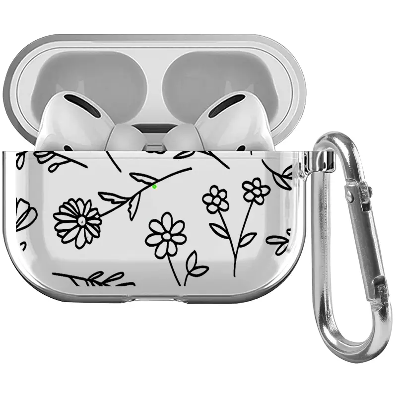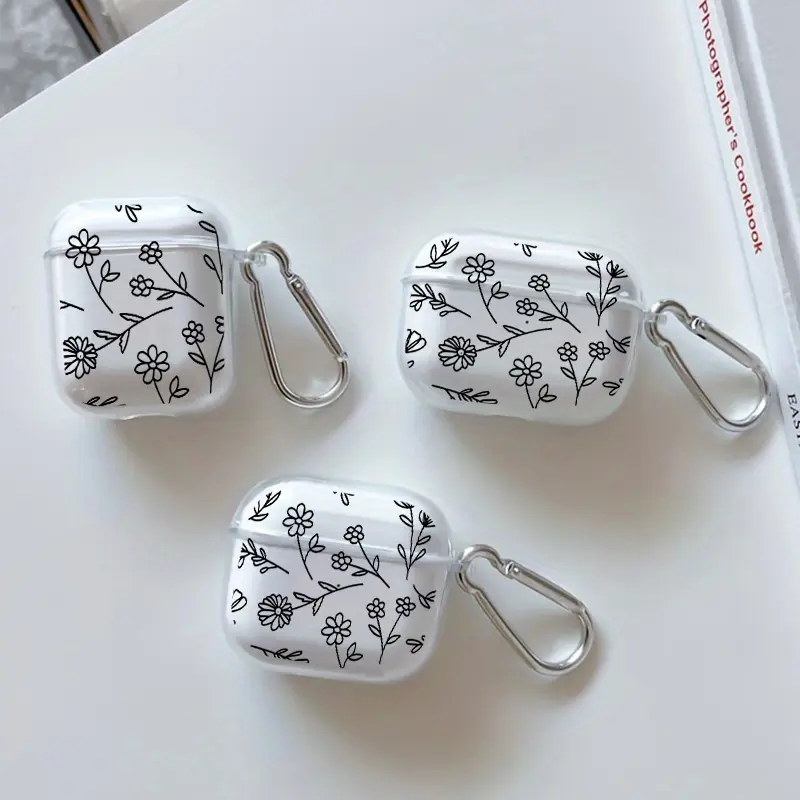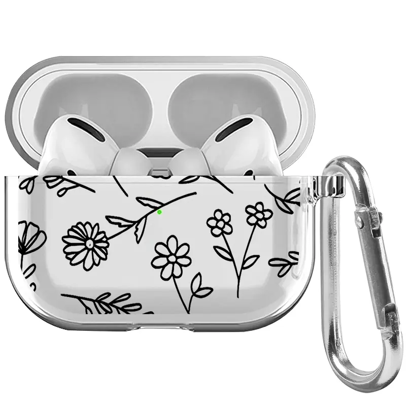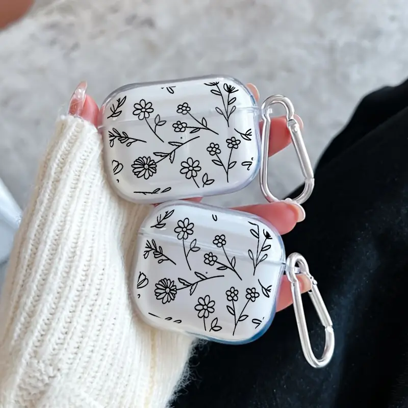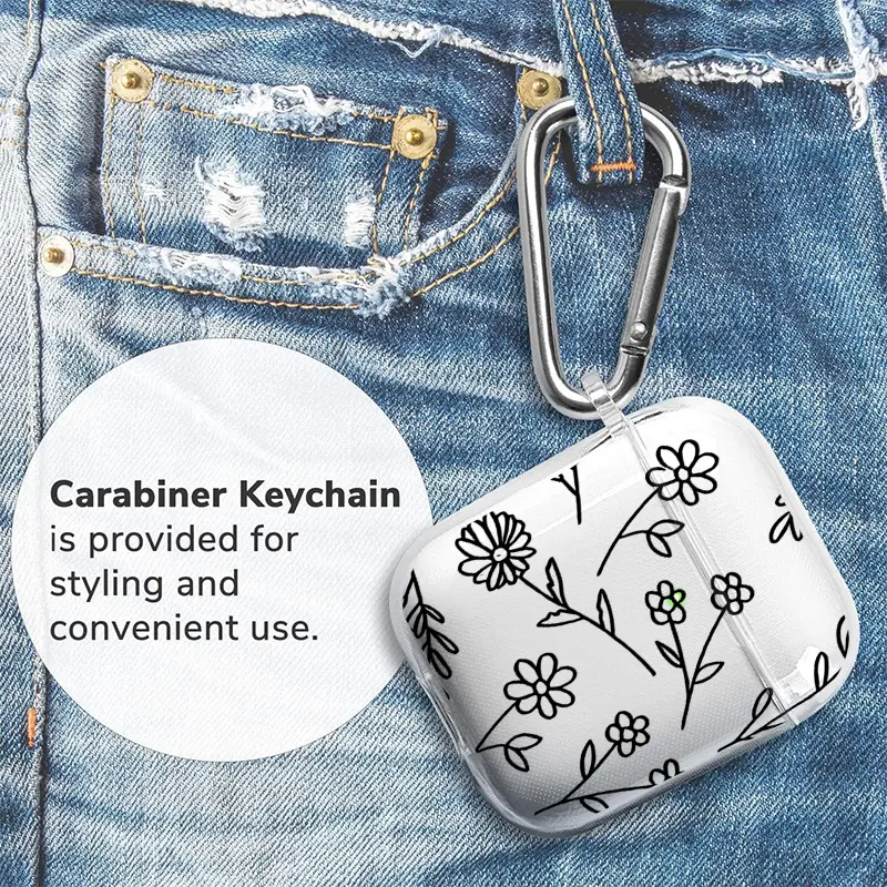 Springtime Flowers Pattern Protective Case for AirPods 4/3/2/1/Pro/Pro2 Soft TPU Earphone Cover, Transparent with Keychain