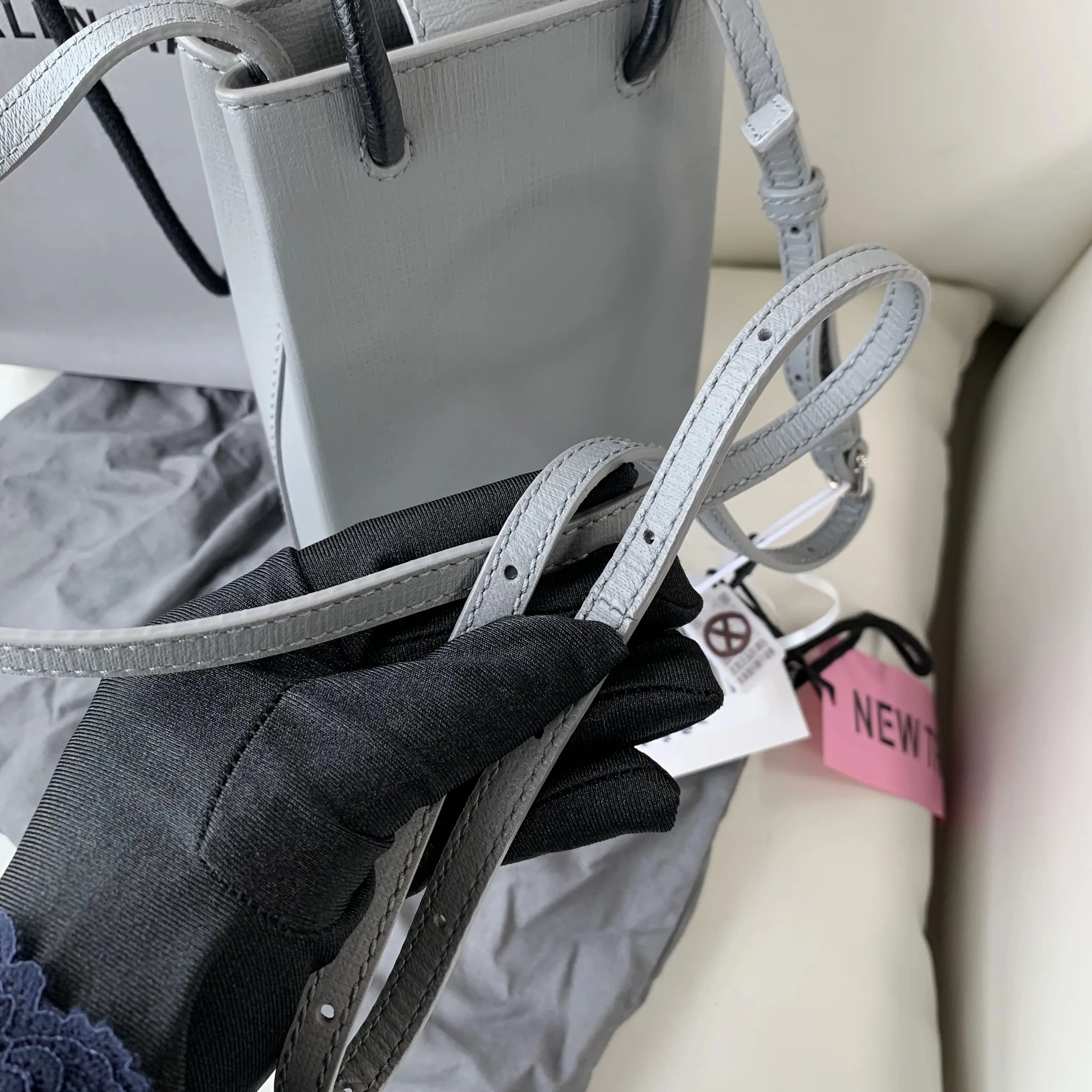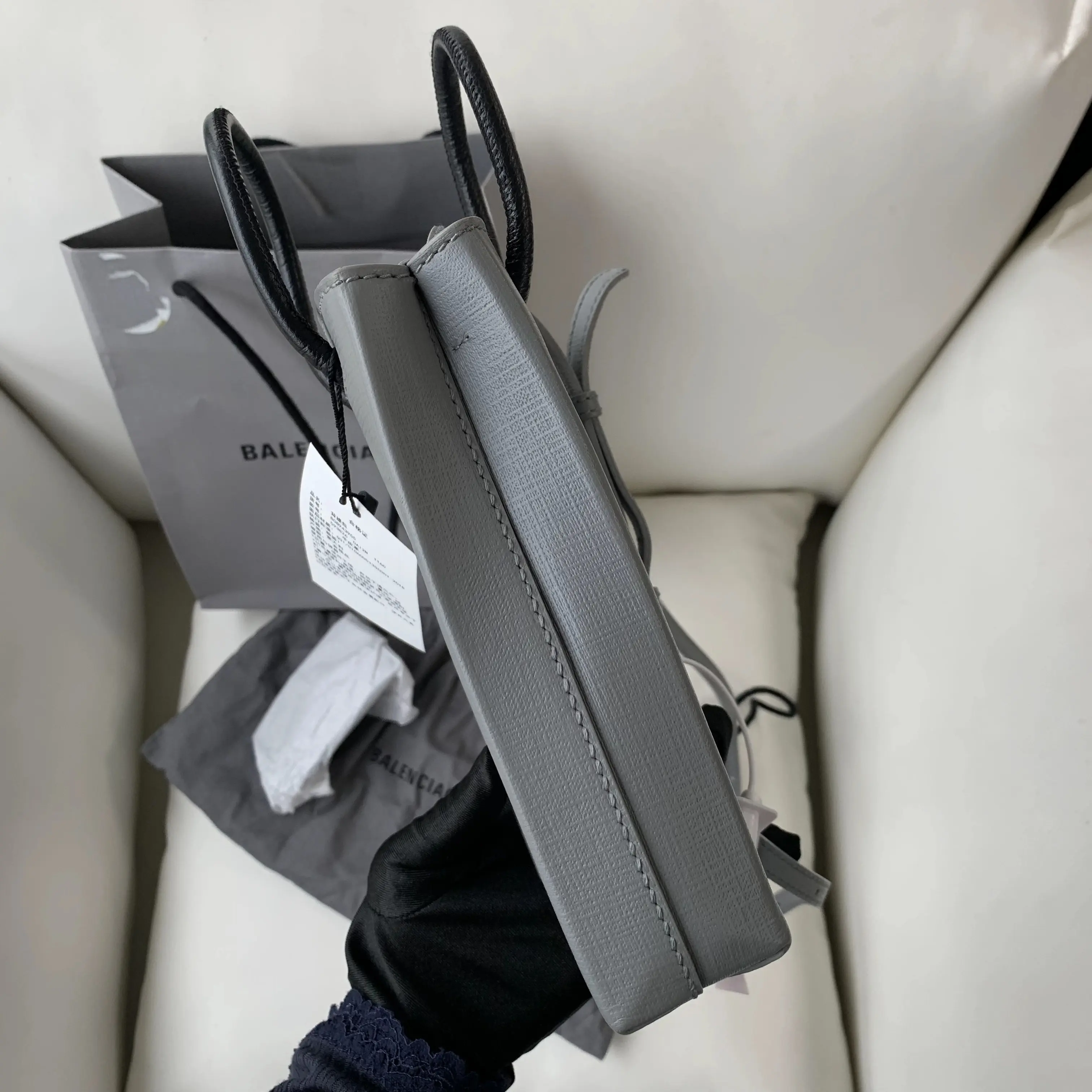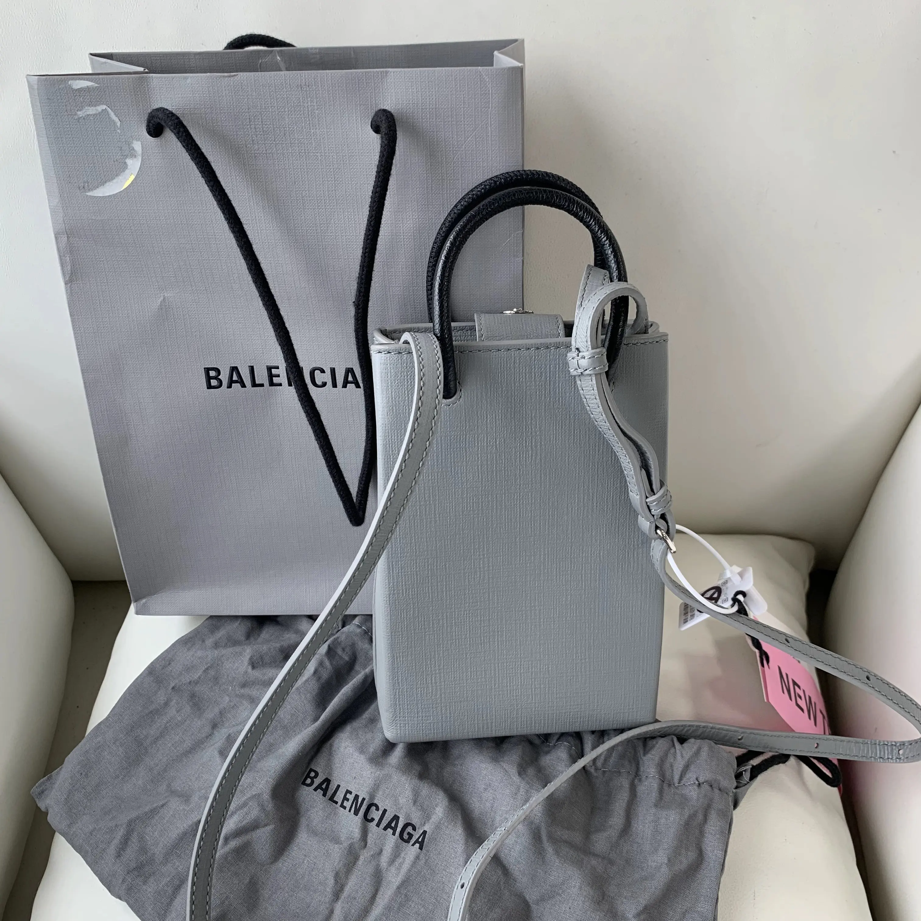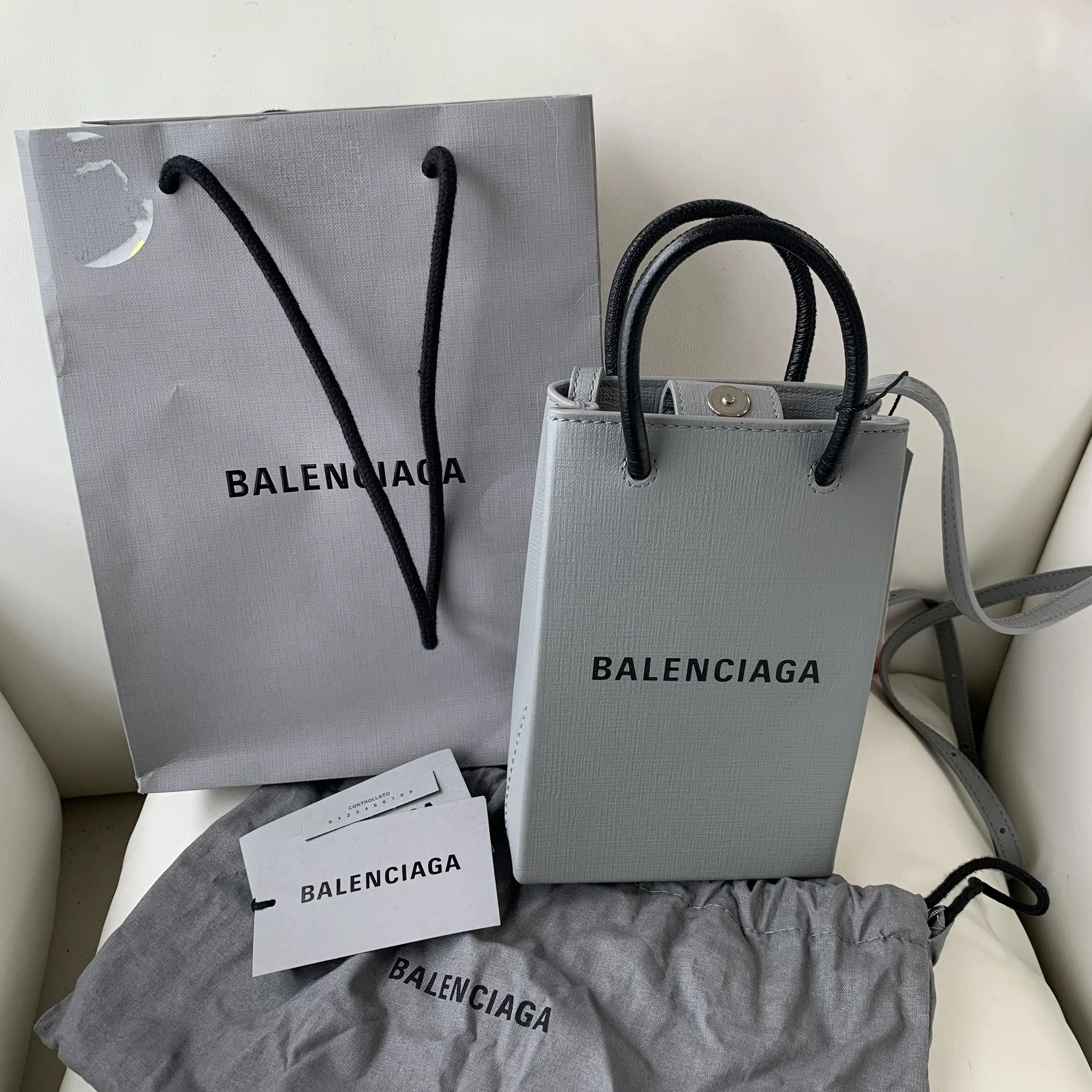 Pre-owned Balenciaga Mini Tote Bag | Gray Logo Print | Top Handle & Crossbody/YJ03316865