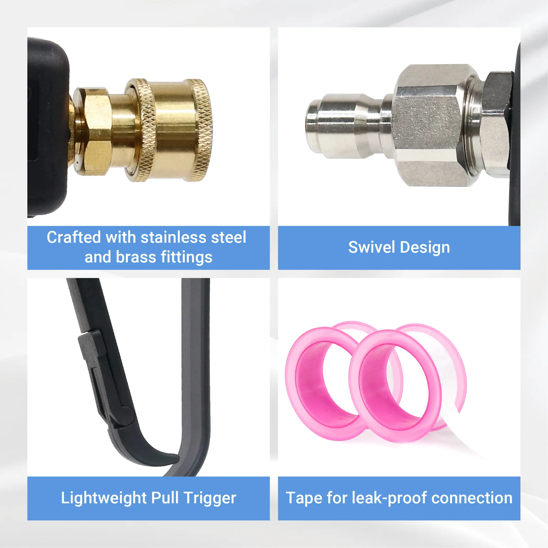 ·[Preinstalled Fittings]: Each pressure washer gun includes factory-installed fittings with tape for a secure, leak-proof connection, saving you installation time.
