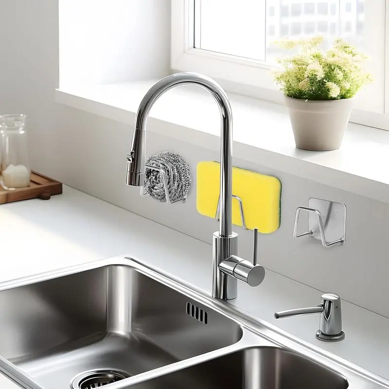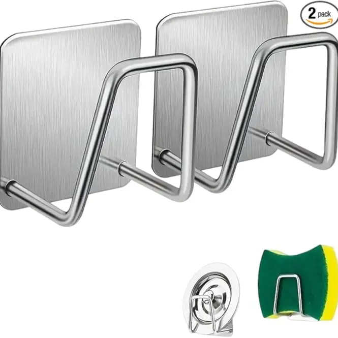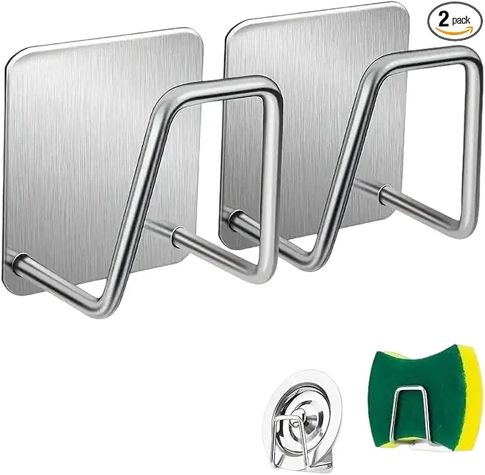 This adhesive sponge holder sink caddy is designed for kitchen use. It comes in a 2-pack, ensuring you have enough for all your needs. Made from stainless steel, it is rust-proof and waterproof, making it durable and reliable. The quick-drying feature keeps your kitchen organized and clean. Ideal for sponges and other small kitchen items.