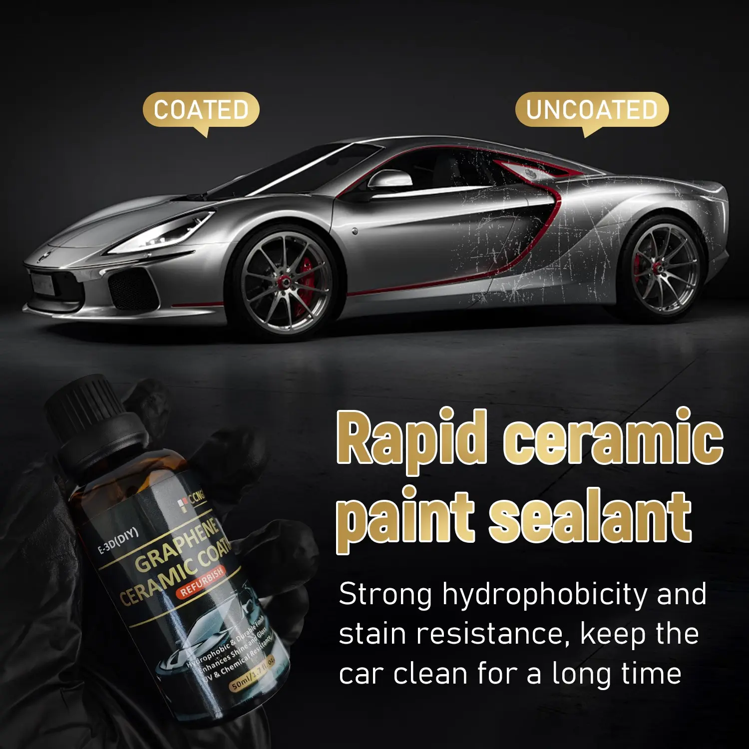 Graphene Ceramic Coating Car Care Product, Professional Top Coat, 50ML Car Wash After Paint Sealant, Ultimate Hydrophobic Protection