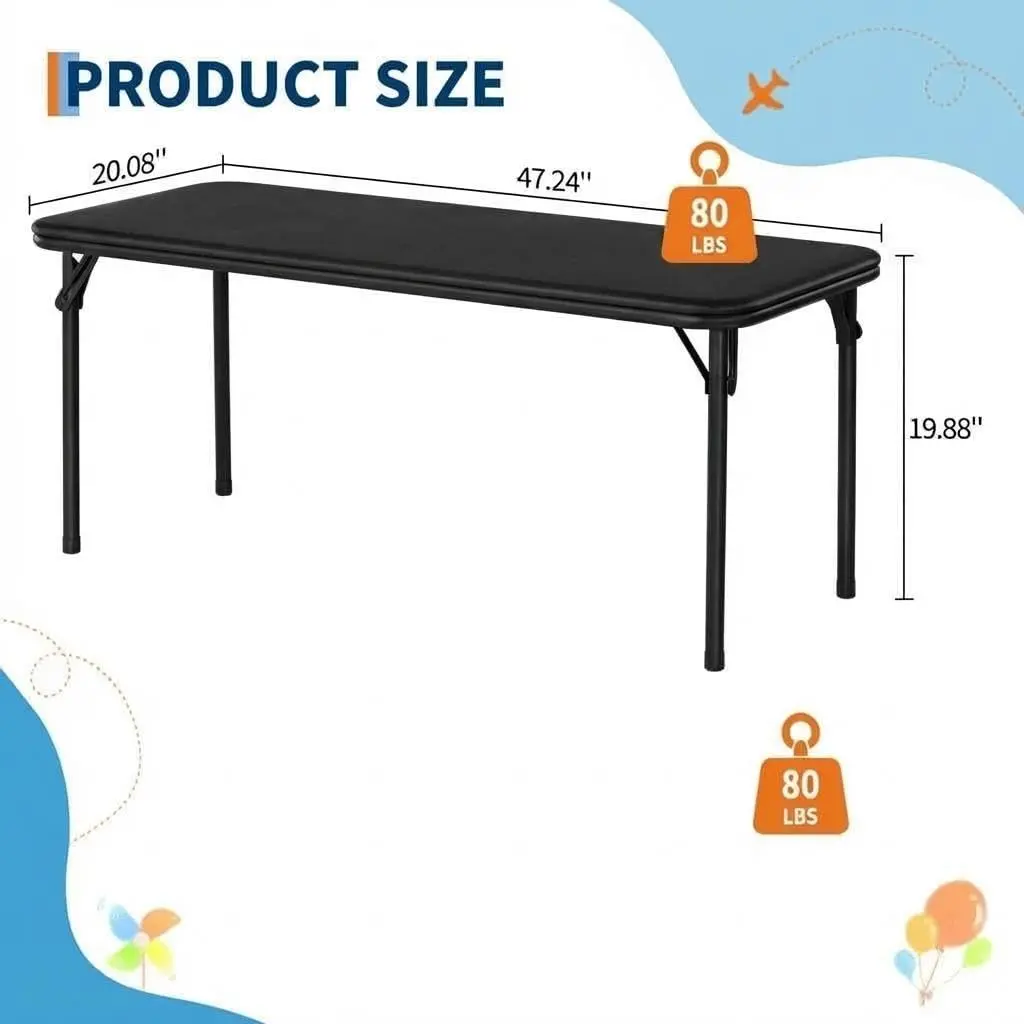 ·Easy-to-Clean Plastic Tabletop:The smooth, waterproof surface wipes clean in seconds—resisting spills, stains, and scratches. Low‑maintenance design makes it ideal for daily or occasional use.