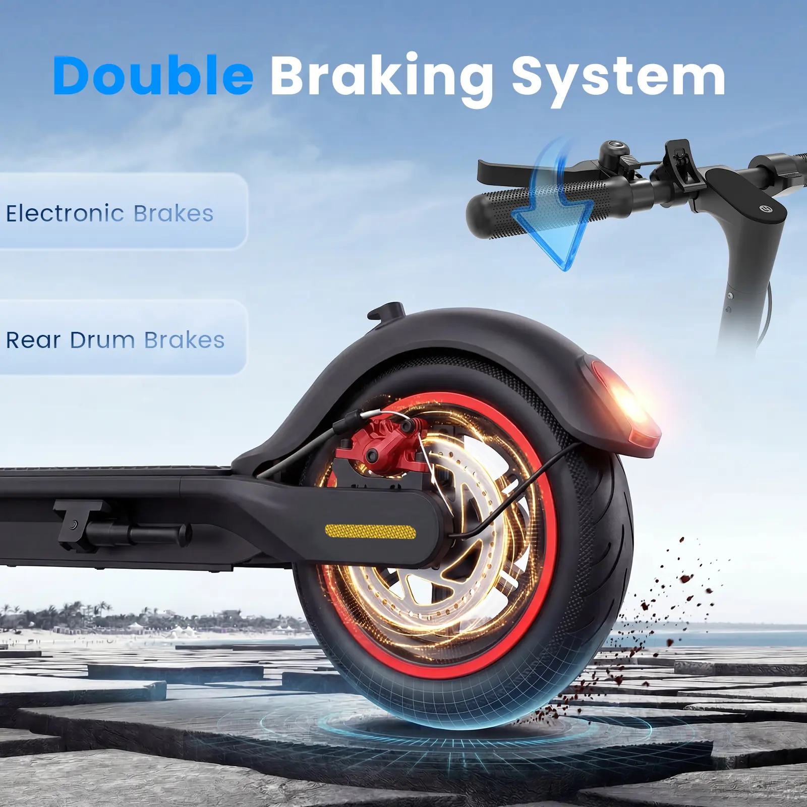 Designed with an advanced dual braking system (electronic brake + rear drum brake), this adult scooter provides reliable, responsive stopping power for safer riding in all conditions.