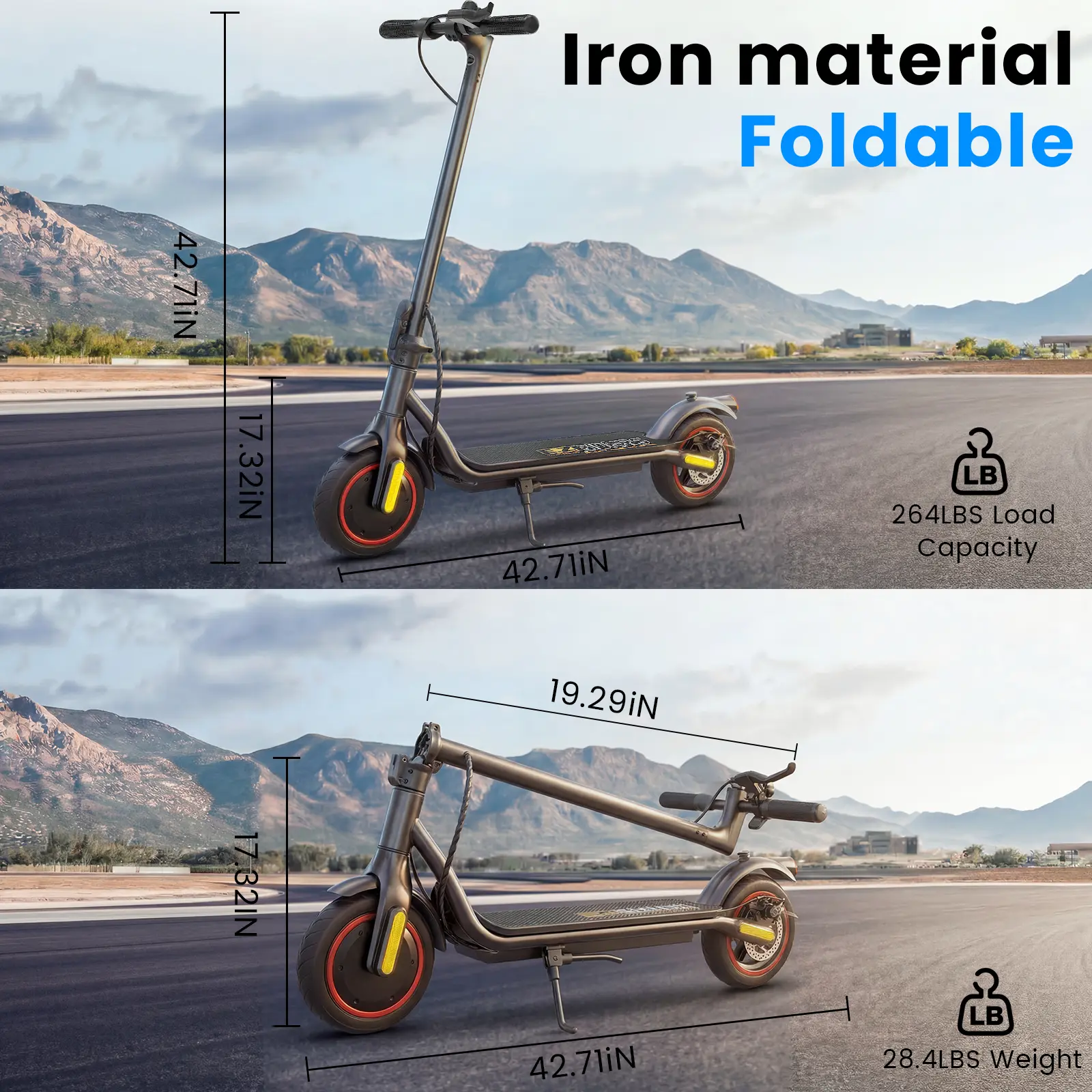 This e-scooter comes with a quick-folding design for easy storage and transport. Its sturdy frame supports riders up to 264 lbs, perfect for daily commuting, travel, and regular use.