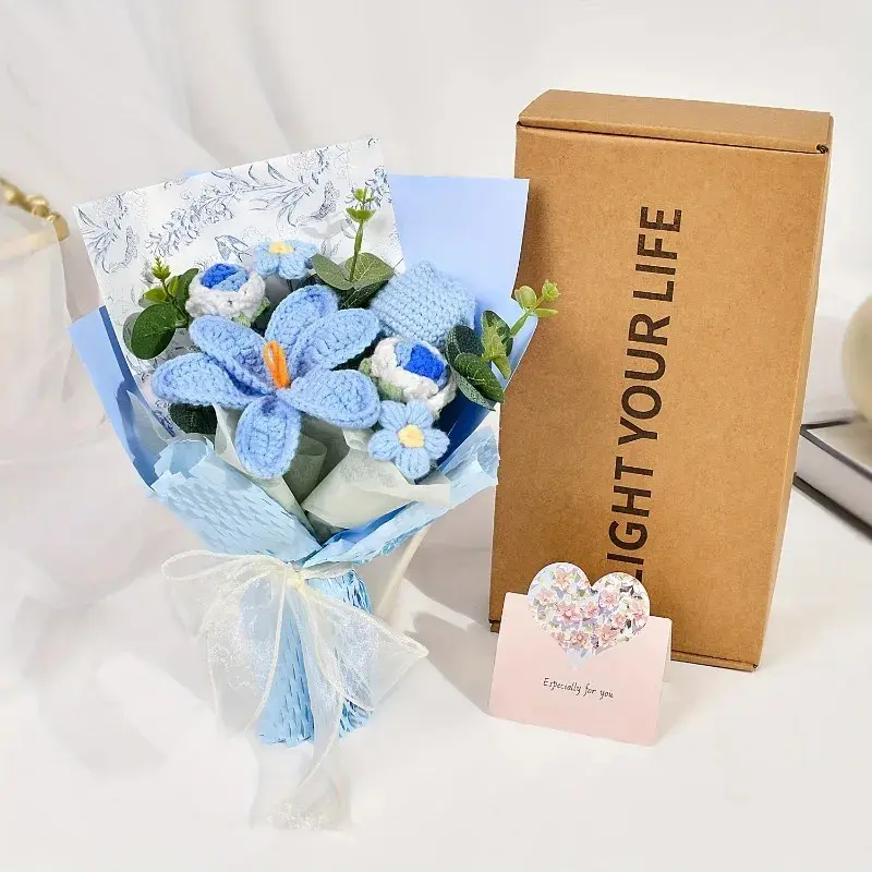 Handmade Crochet Tulip Bouquet Mother's Day Christmas Thanksgiving Graduation Present Wed Fabric Tulip Home DecorWinter
