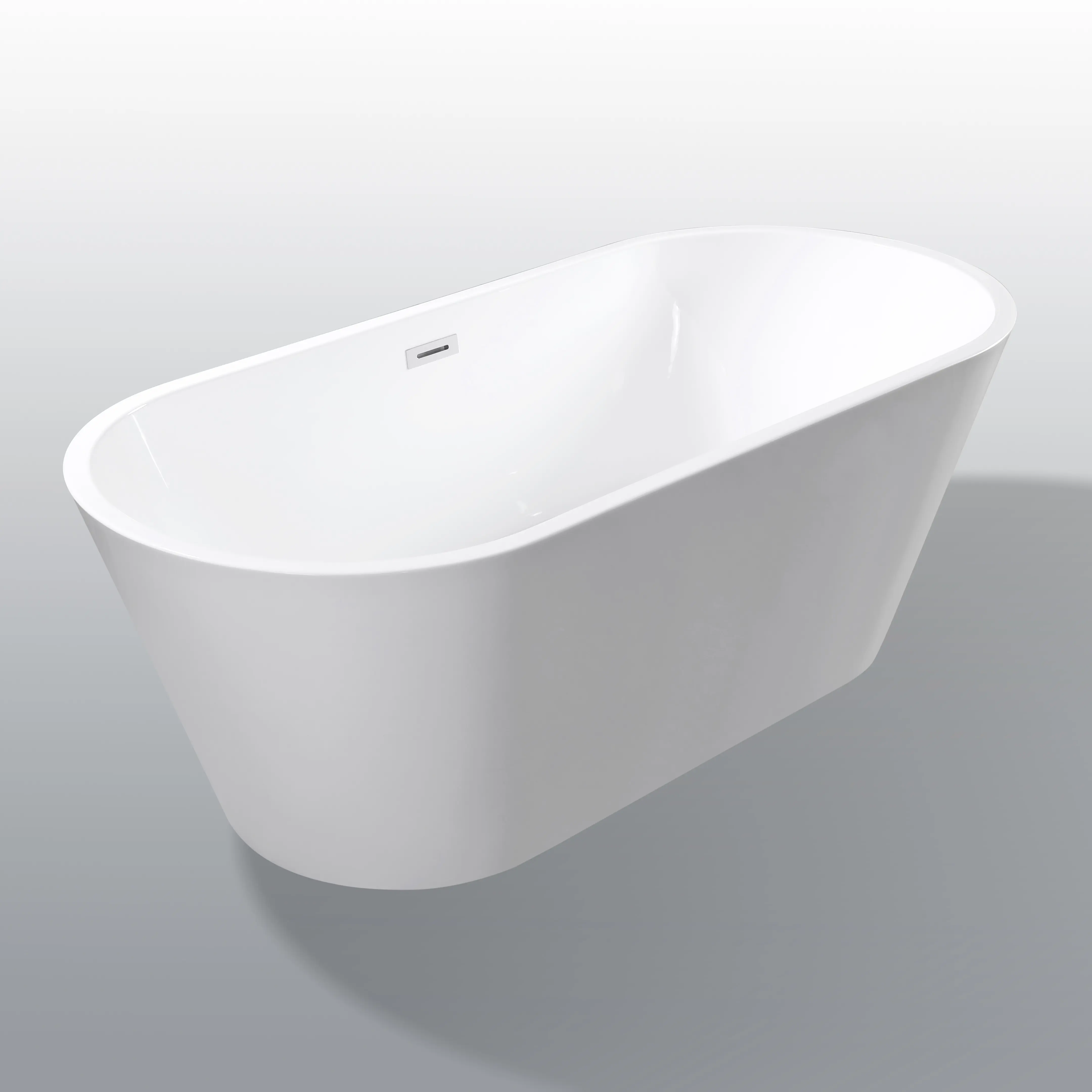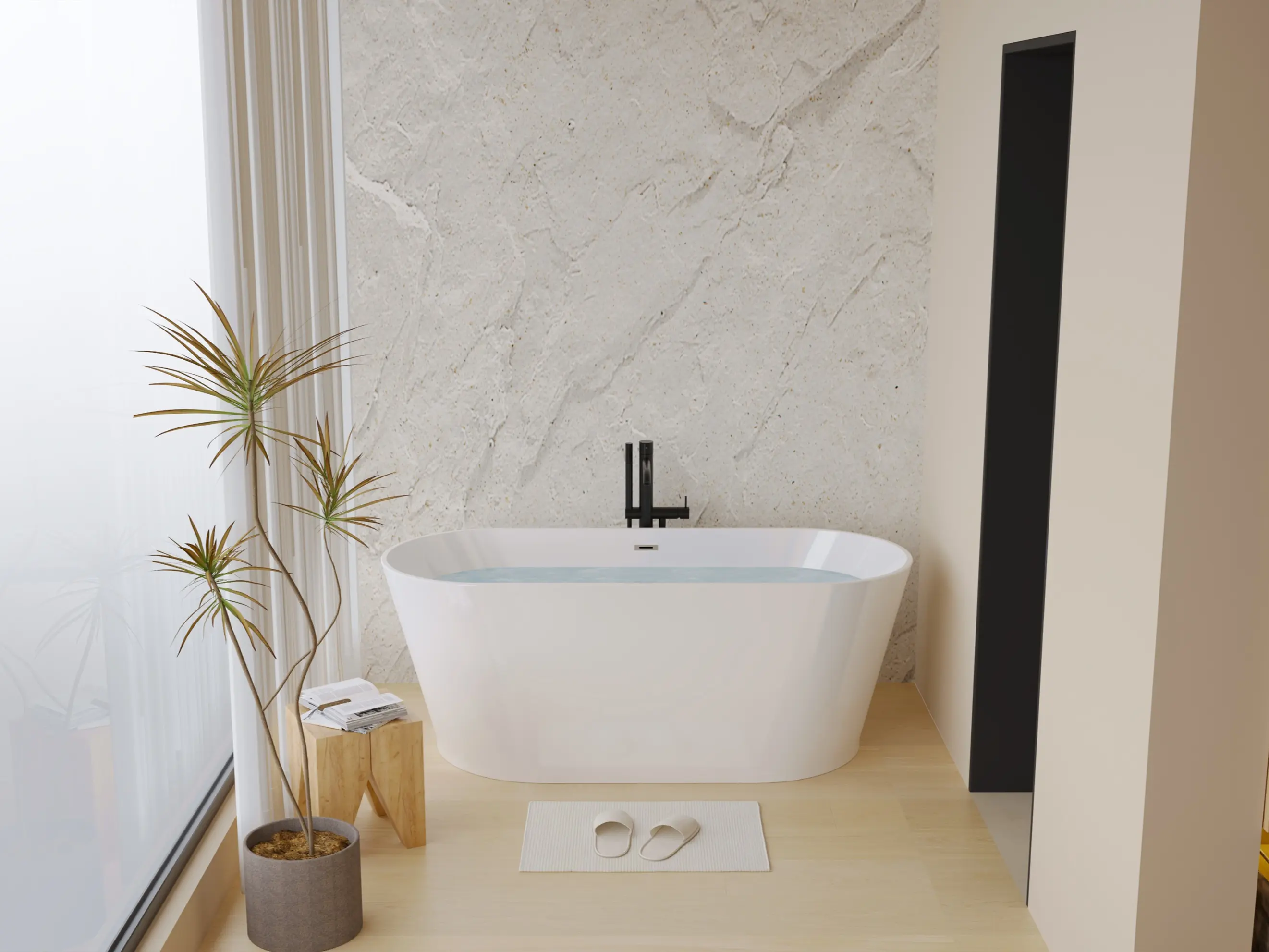 A 59-inch freestanding bathtub offers a spacious and comfortable soak. Ergonomically designed, it helps relieve daily fatigue. The large size ensures a relaxing experience, perfect for unwinding. This tub is a statement piece for your bathroom, combining functionality with style.