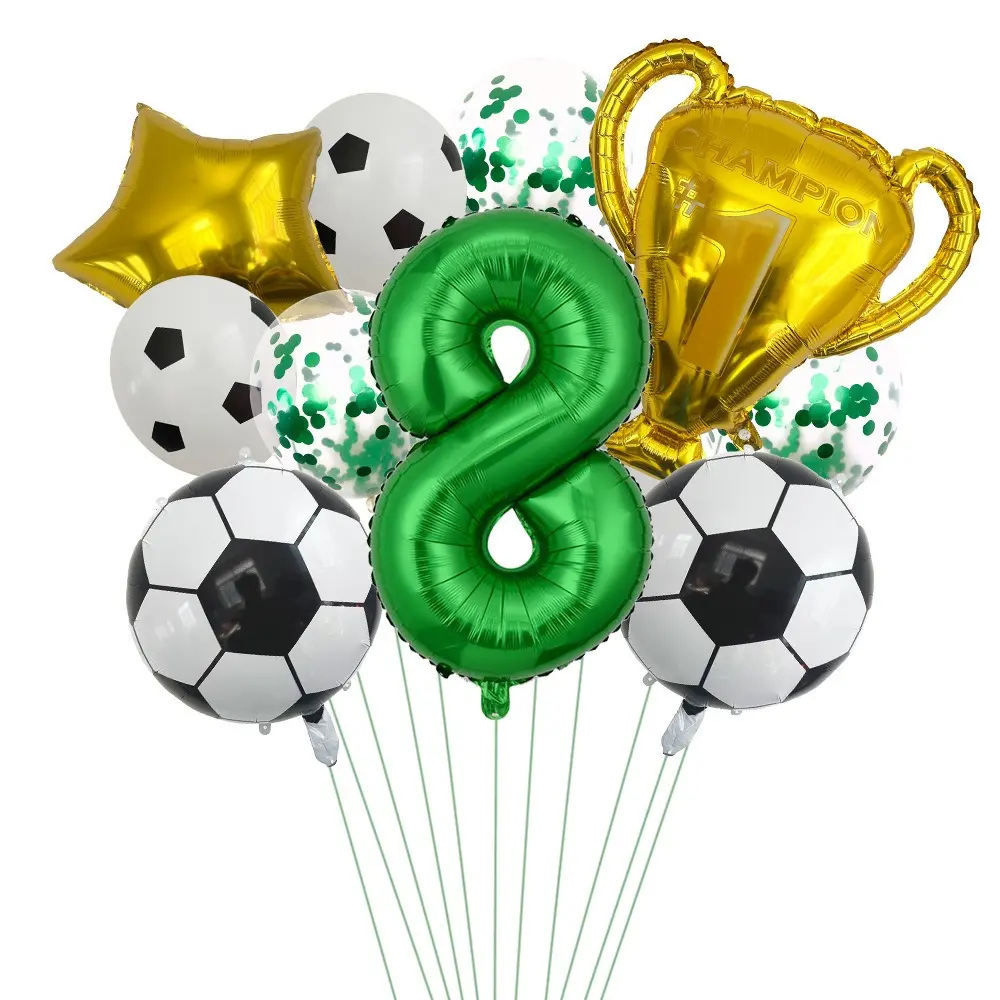 Celebrate a birthday with a football twist! This set includes balloons designed with football-themed numbers. Ideal for fans of the sport, it adds a fun, thematic touch to any party. The balloons are perfect for creating a festive atmosphere.