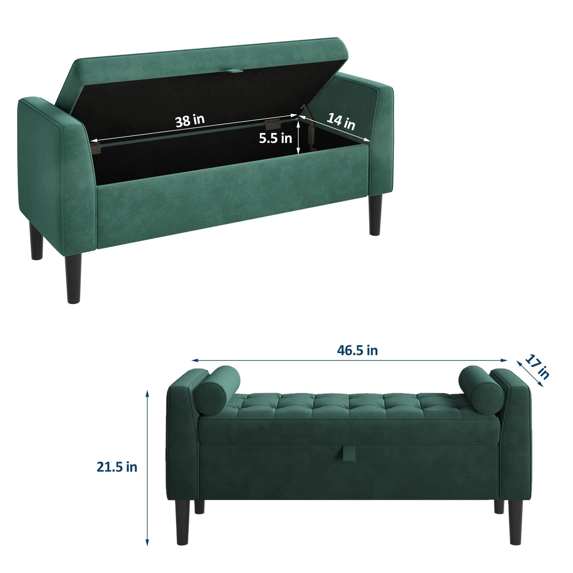 Velvet Storage Bench with Spacious Hidden Compartment – 46.5″ Tufted Ottoman for Entryway, Bedroom, Hallway