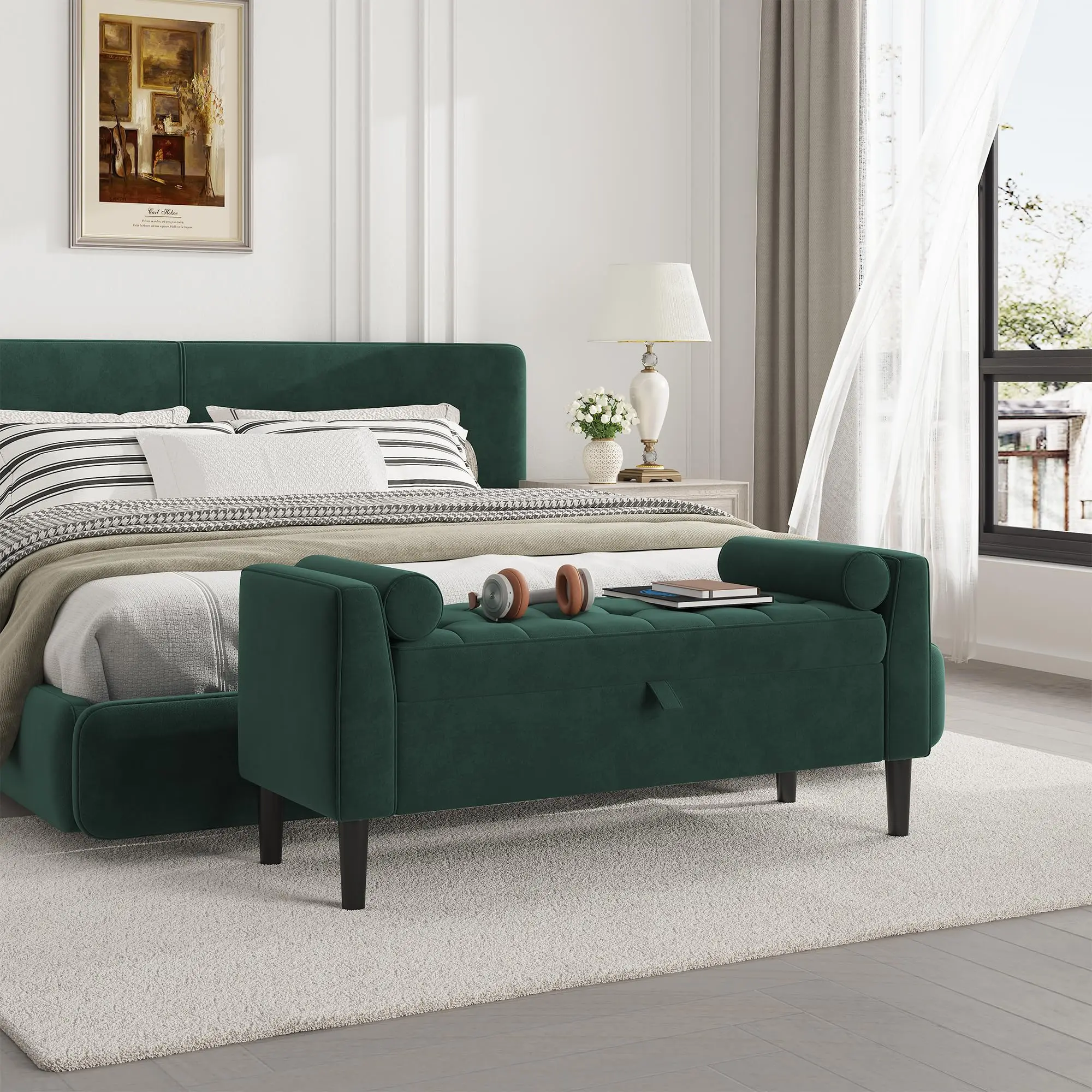 Upholstered in soft, breathable velvet with high‑density foam padding, this bench offers superior comfort. The sophisticated button‑tufted design and diamond stitching add a modern, luxurious touch, making it an inviting spot to sit while elevating your home decor.