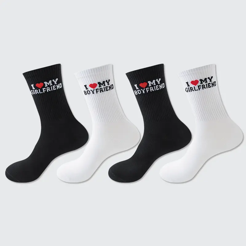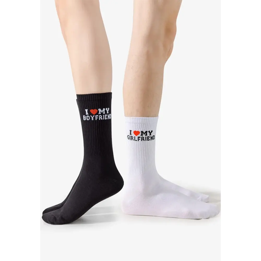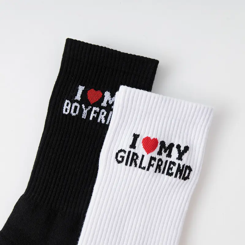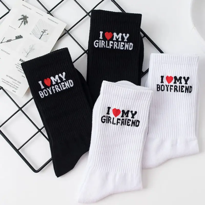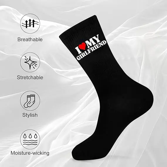 ·Unique Design: "I LOVE MY GIRLFRIEND", "I LOVE MY BOYFRIEND" printed on the side of the socks.Not only a pair of socks for daily wear, but also a fashionable item to express love