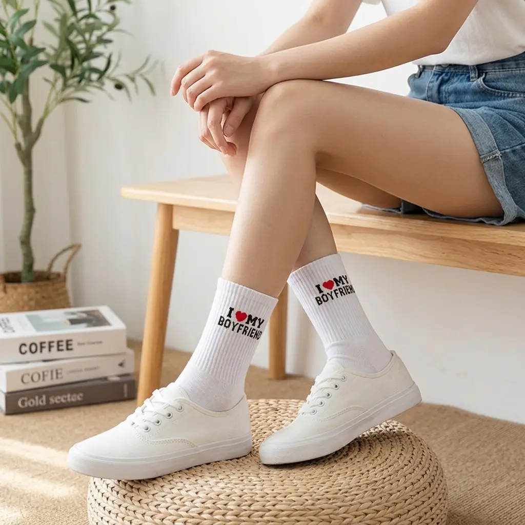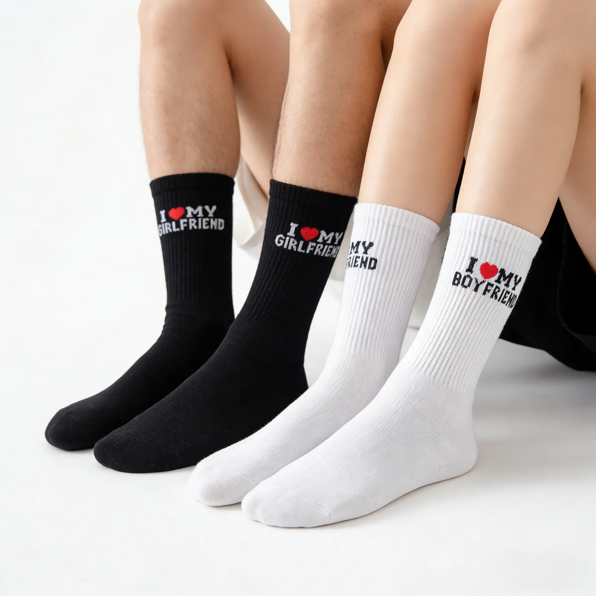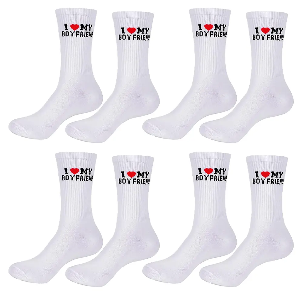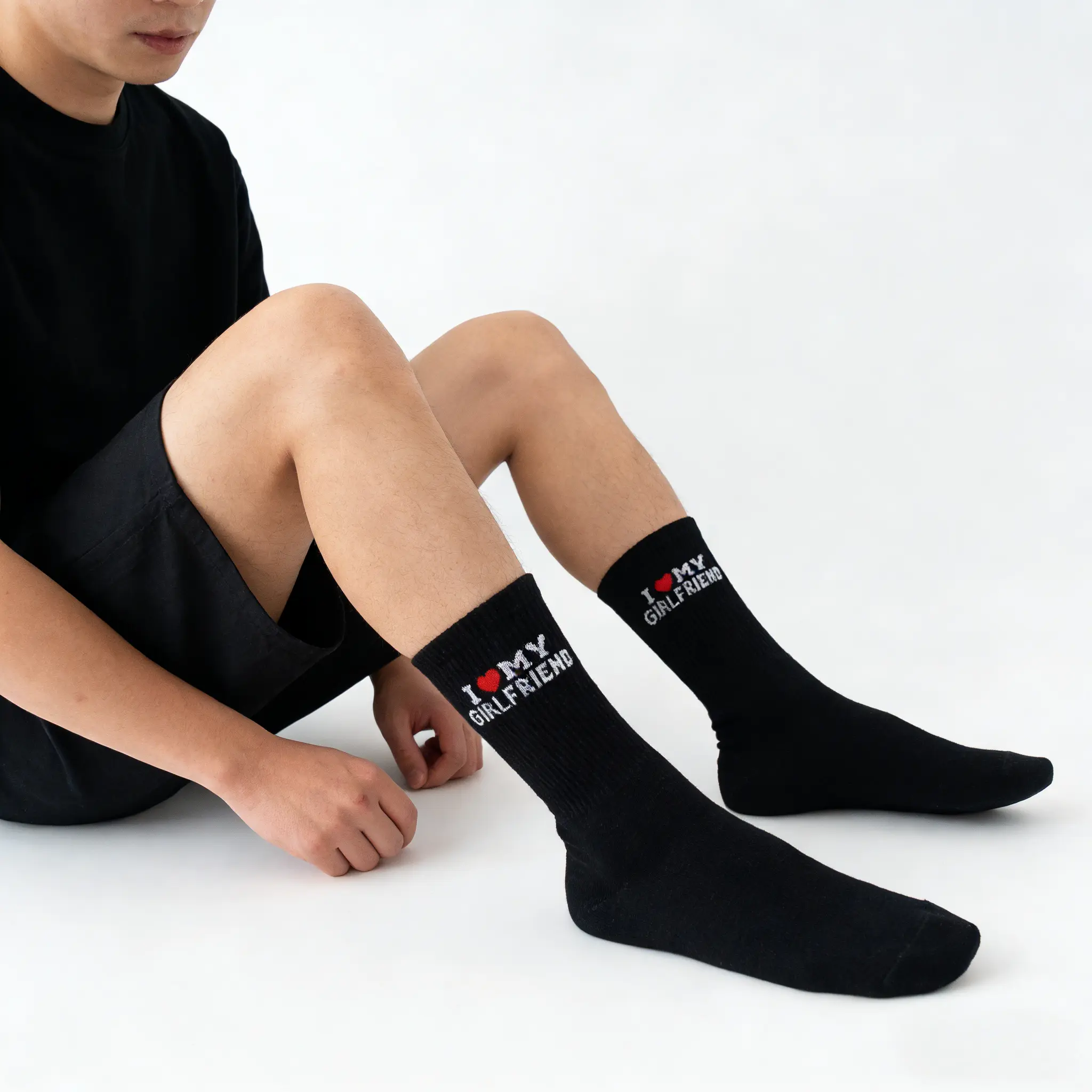 ·Unique Design: "I LOVE MY GIRLFRIEND", "I LOVE MY BOYFRIEND" printed on the side of the socks.Not only a pair of socks for daily wear, but also a fashionable item to express love