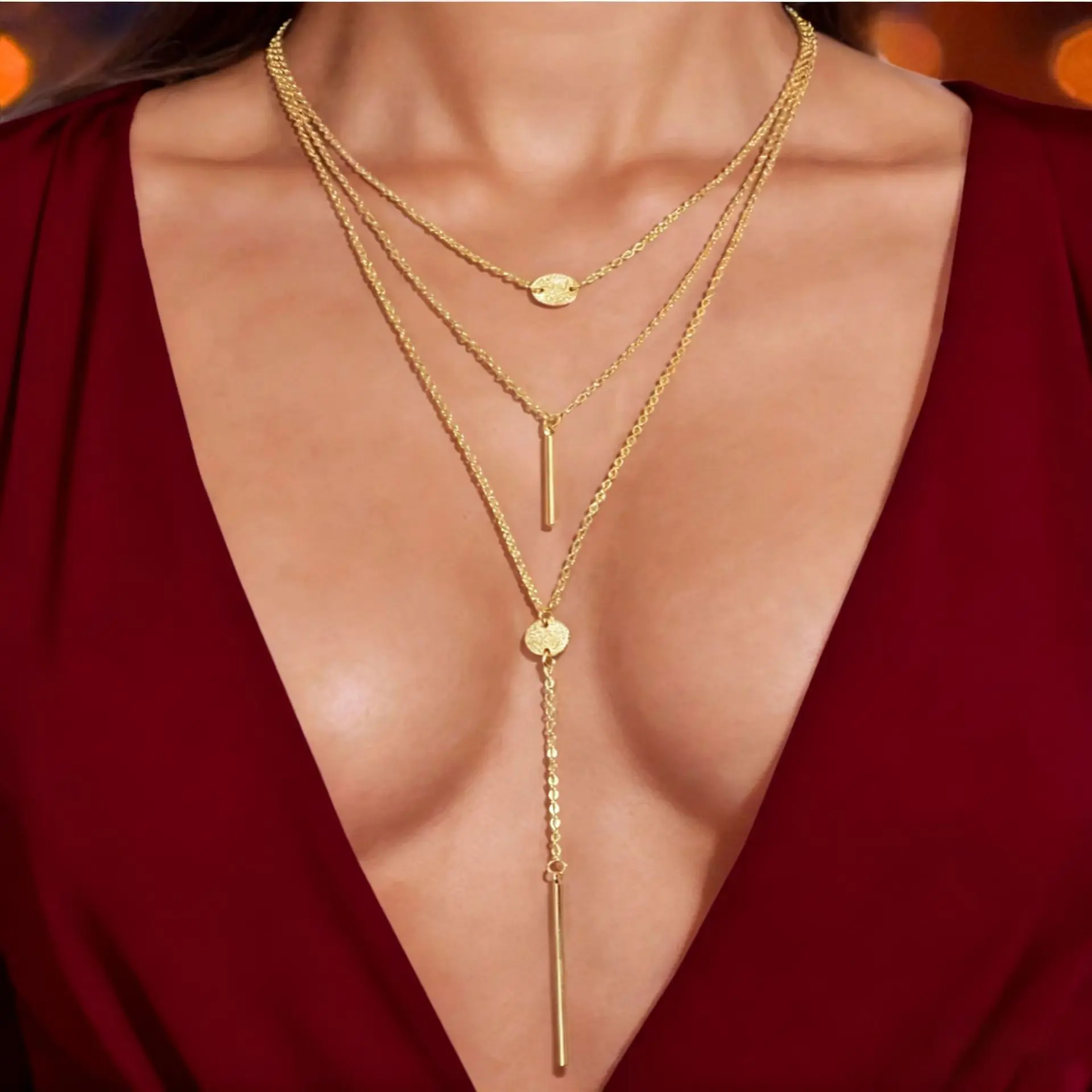 Stackable multi-layer metal pendant necklace with heart, cylinder and bead charms. Designed with different chain lengths to create rich visual layers, perfectly modify your neckline and make your face look slimmer. Made of durable metal chain in silver and gold colors, delicate and eye-catching for any outfit. Ideal for daily streetwear, shopping, dating, parties and fashion blogger styling. A must-have trendy jewelry for cool girls and elegant women.