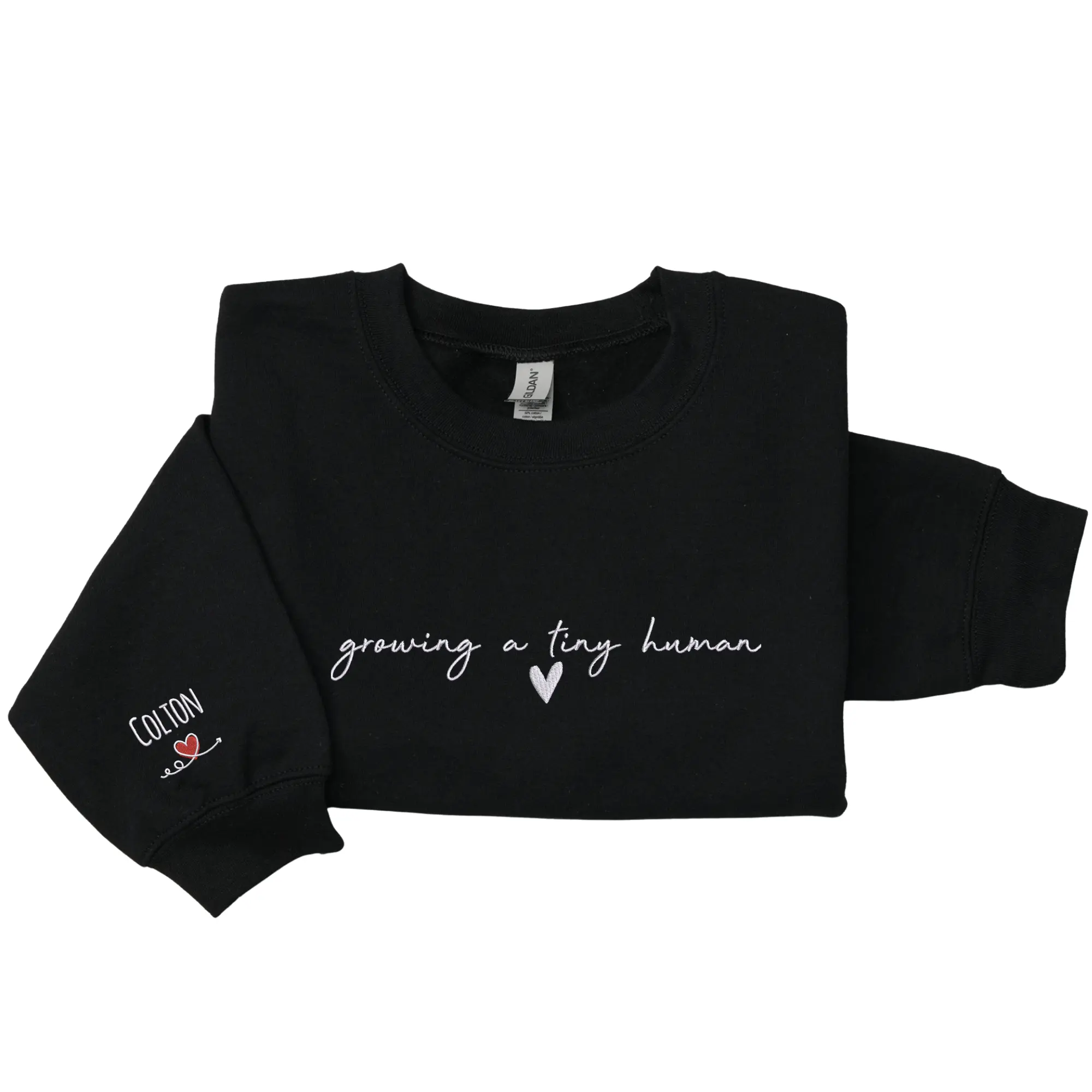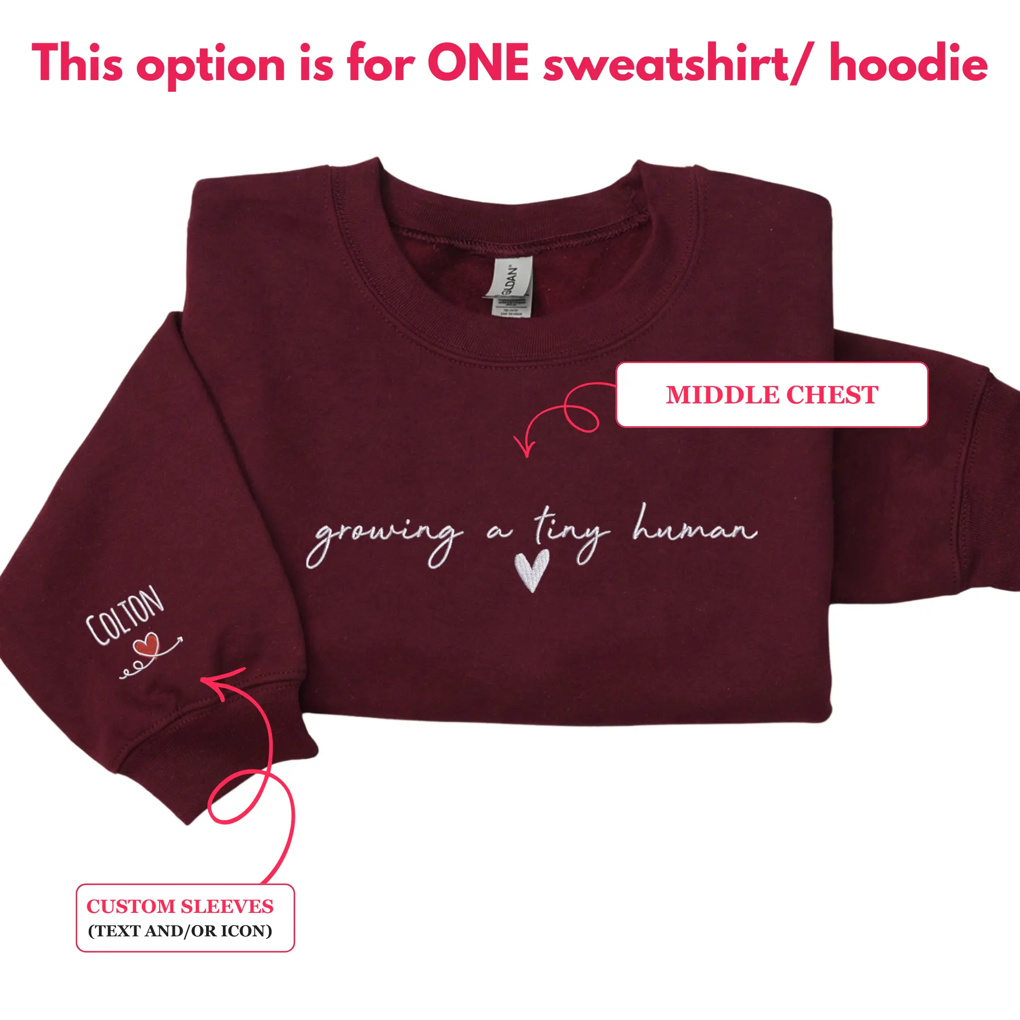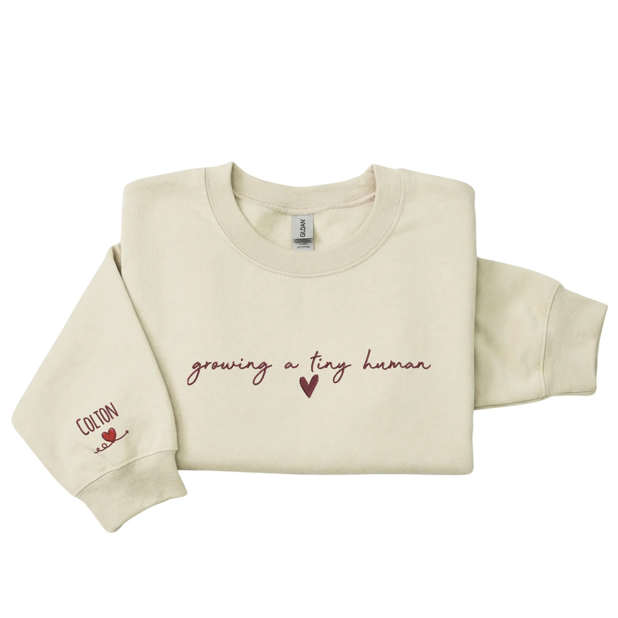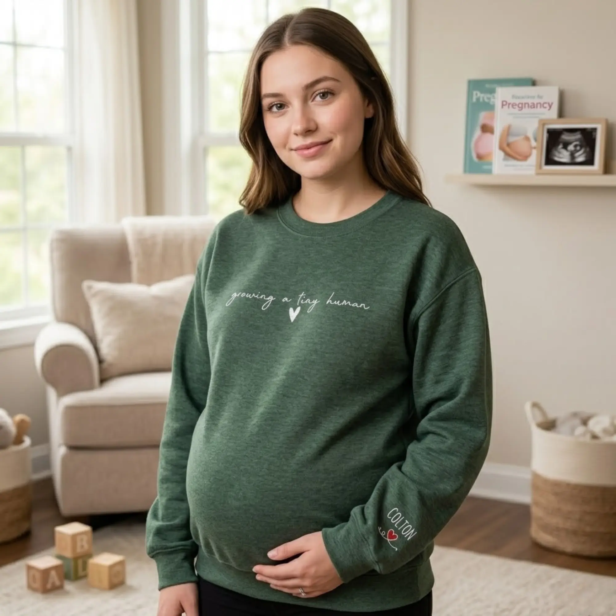 Embroidered Cute Pregnancy Sweatshirt, Growing a Tiny Human Hoodie, Pregnancy Announcement, Gift for New Mom, Maternity Cozy, Baby Bump Shirt, Mom to Be Sweater, Mom To Be Gift