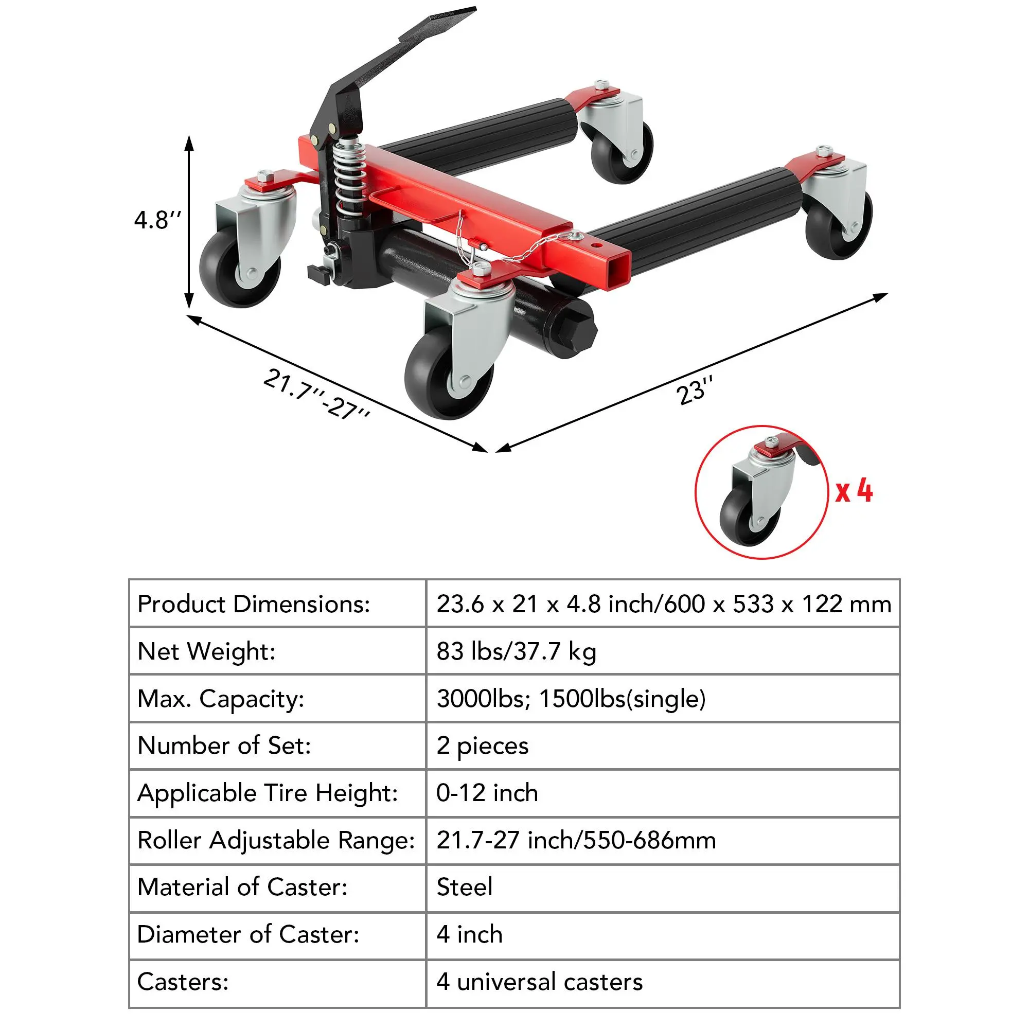 ·Versatile Application: Ideal for cars, SUVs, light trucks, and disabled vehicles. Available in sets of 2 or 4, supporting total capacities of 3,000 lbs or 6,000 lbs respectively to suit your vehicle weight and needs.
