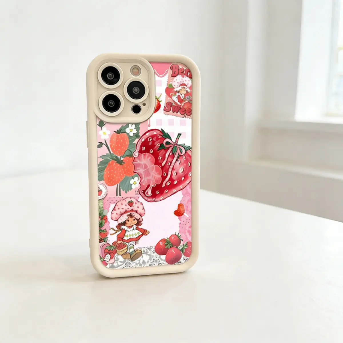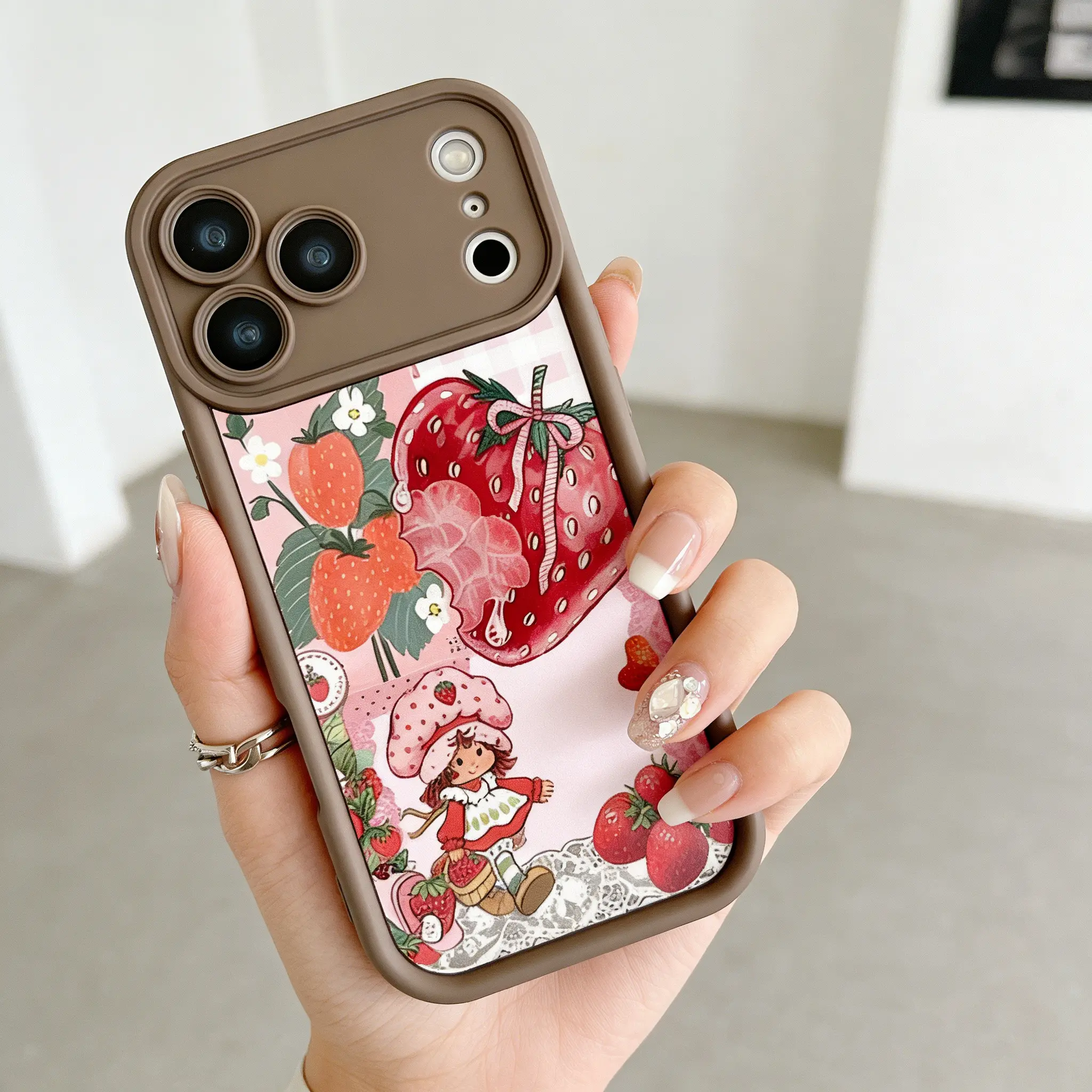 Strawberry Shortcake Pattern Phone Case, Soft Silicone, Fully Protected and Shockproof For iPhone 17 16 15 Pro Max 14 13 12 11 X Plus Air 17E Pink Girl Mini