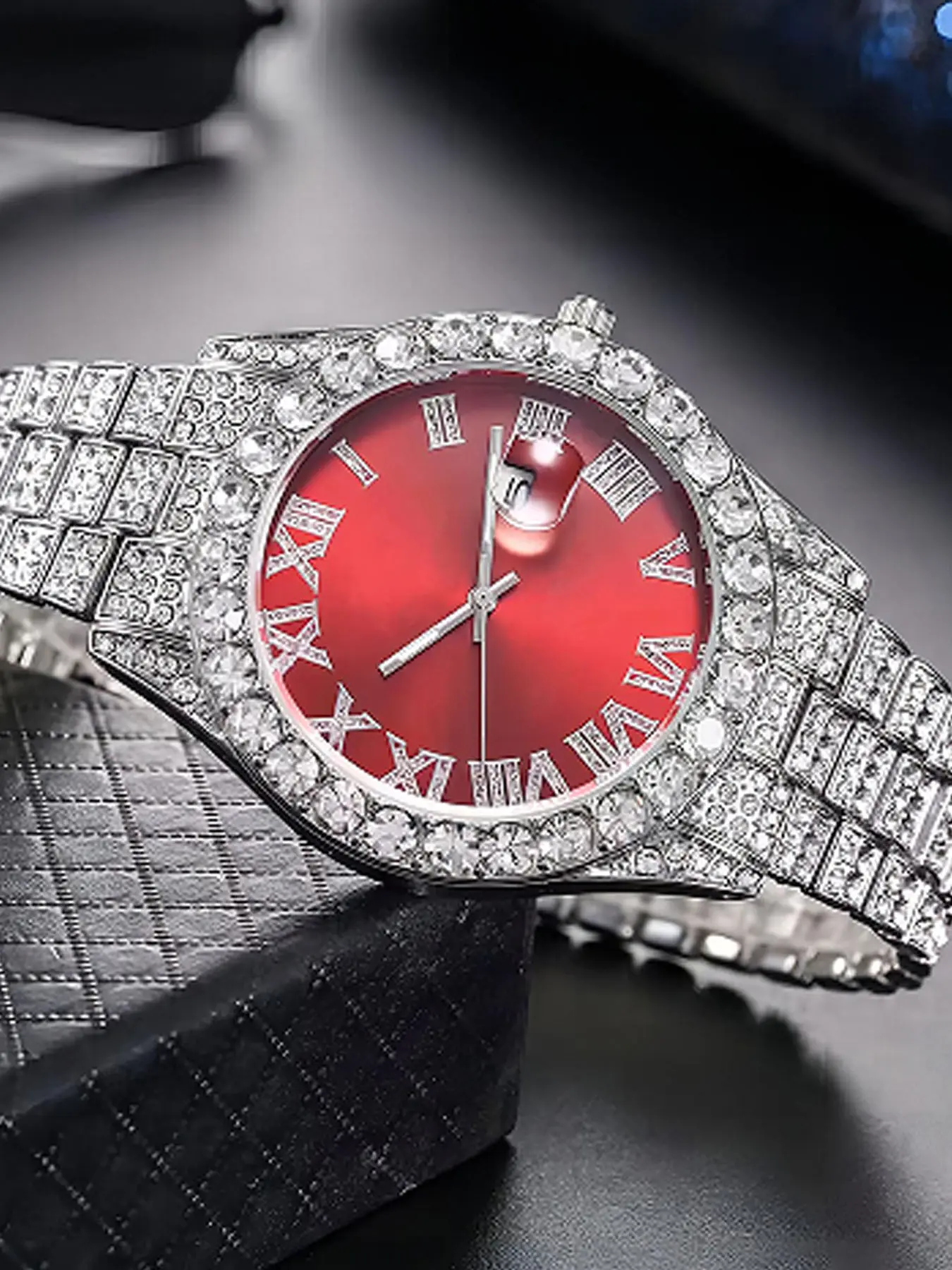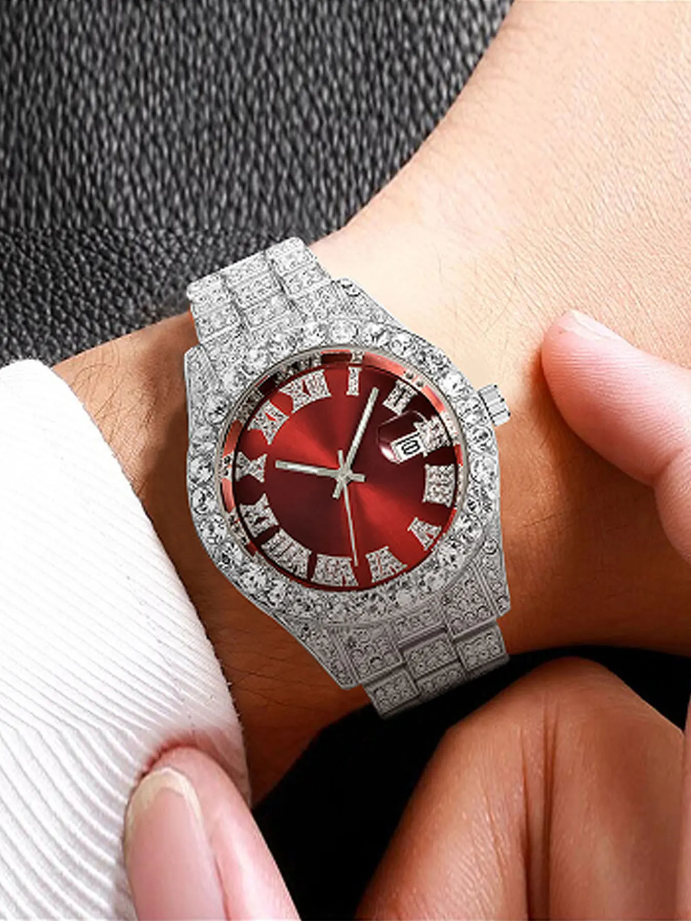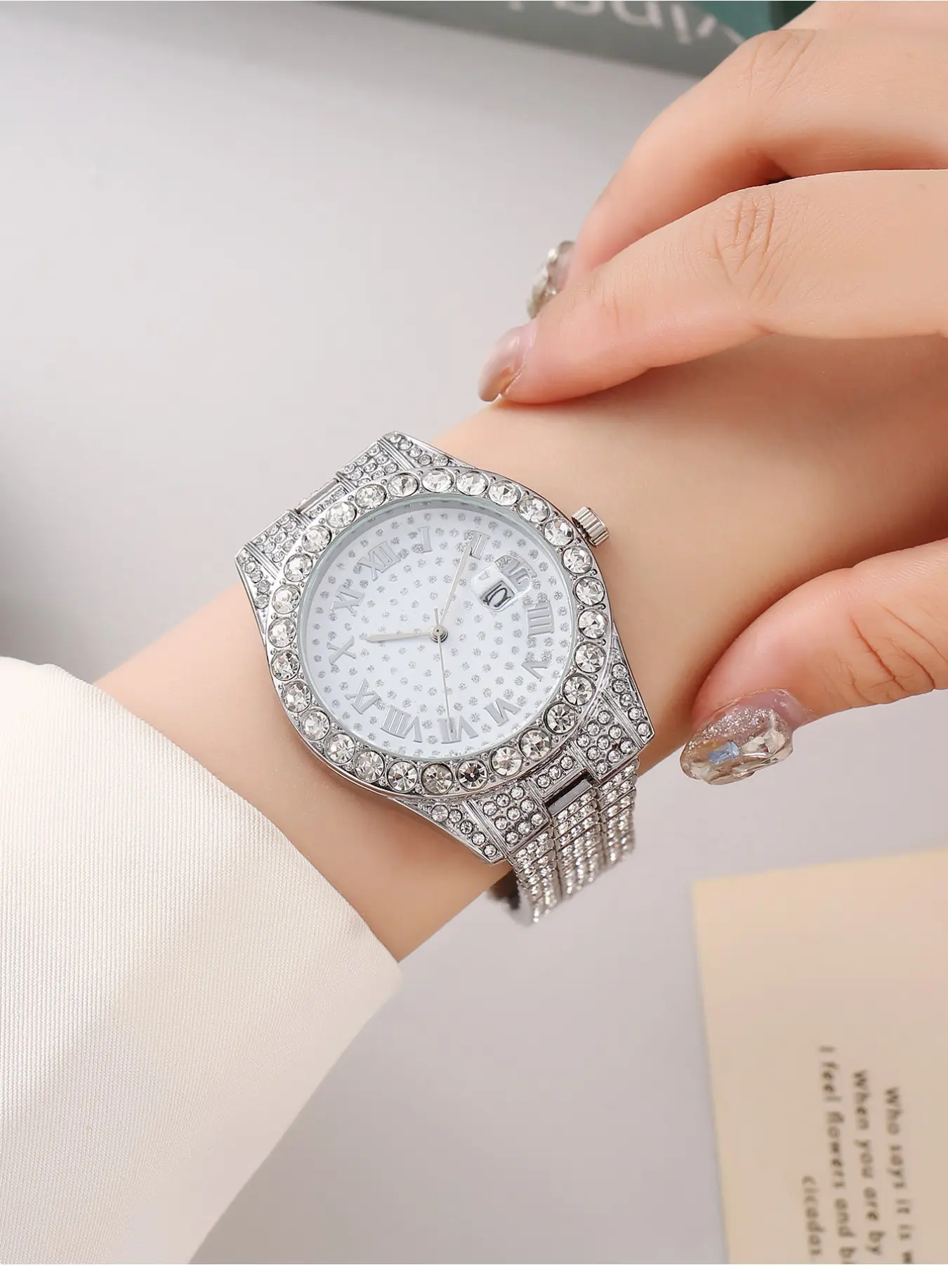Fashionable square diamond-set full diamond Roman numeral dial quartz ladies' watch Diamond Wrist Watch