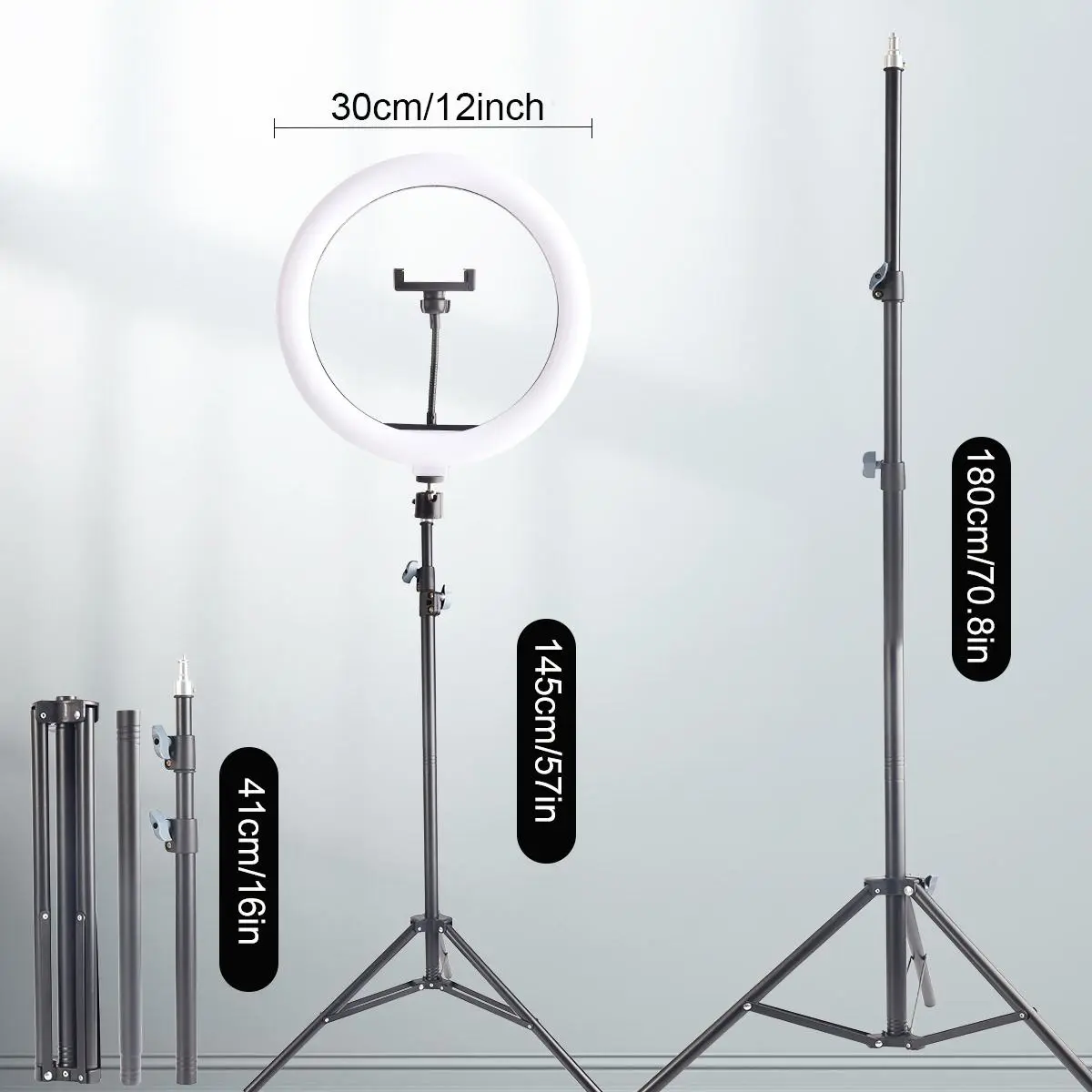 12" Ring Light with Tall 43-71" Telescopic Tripod, Dimmable LED Video Light with Phone Holder for Live Streaming, Makeup, YouTube Videos & TikTok, Adjustable Brightness & 2700K-5600K Color Temperature, Stable Aluminum Alloy Tripod for Professional Lighting