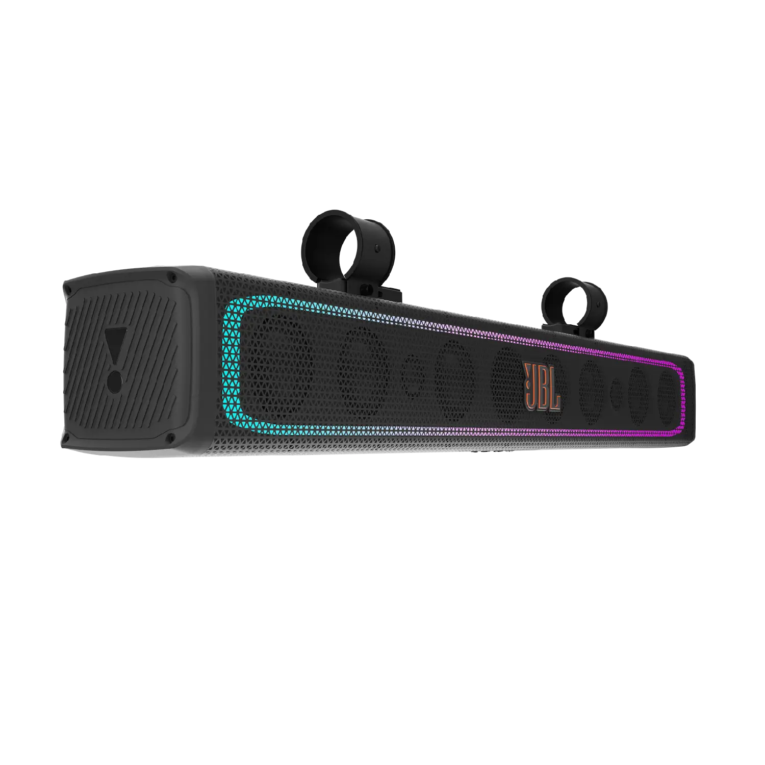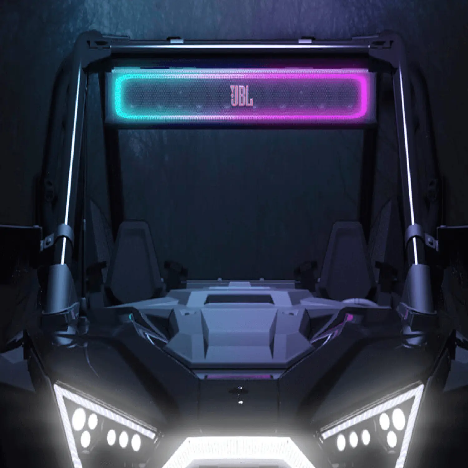 JBL RALLYBAR XL is a IP66 rated water resistant Bluetooth® Soundbar with 300Wrms amplifier, extraordinary sound experience and unique dynamic LED lights to UTVs, golf carts, boats and other vehicles built for recreation. Each RALLYBAR XL can be used by itself or connected to multiple RALLYBAR XL or RALLYBAR XL family products (RALLYBAR, RALLYBAR S and RALLYBAR XL) by using its built-in broadcast mode. The innovative mounting kits design (patent pending) offers multiple position combinations on top and back to accommodate a variety of installation requirements. Bluetooth®, USB disk and Aux-in audio players are supported. HI-Resolution Audio for AUX-IN input audio source is available.