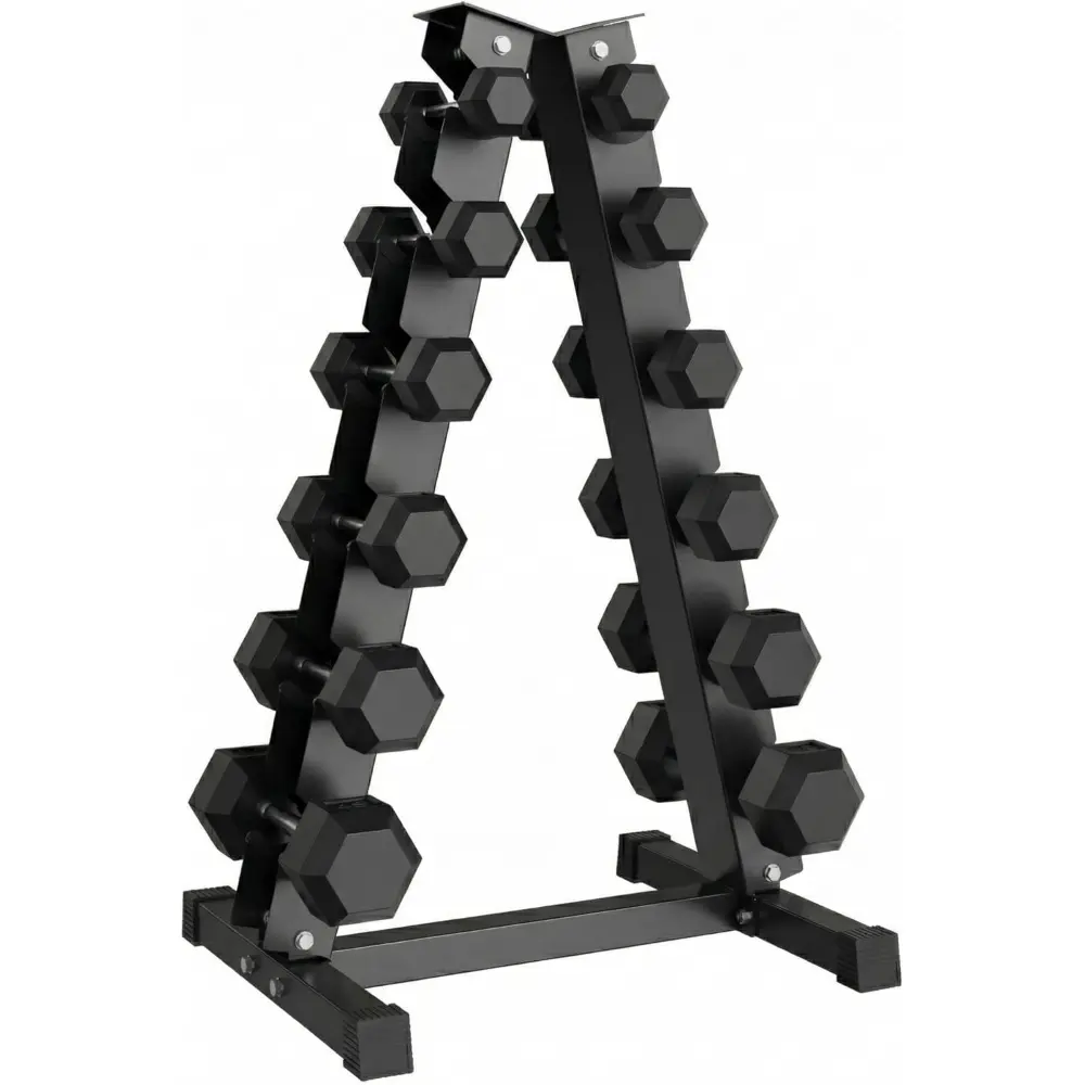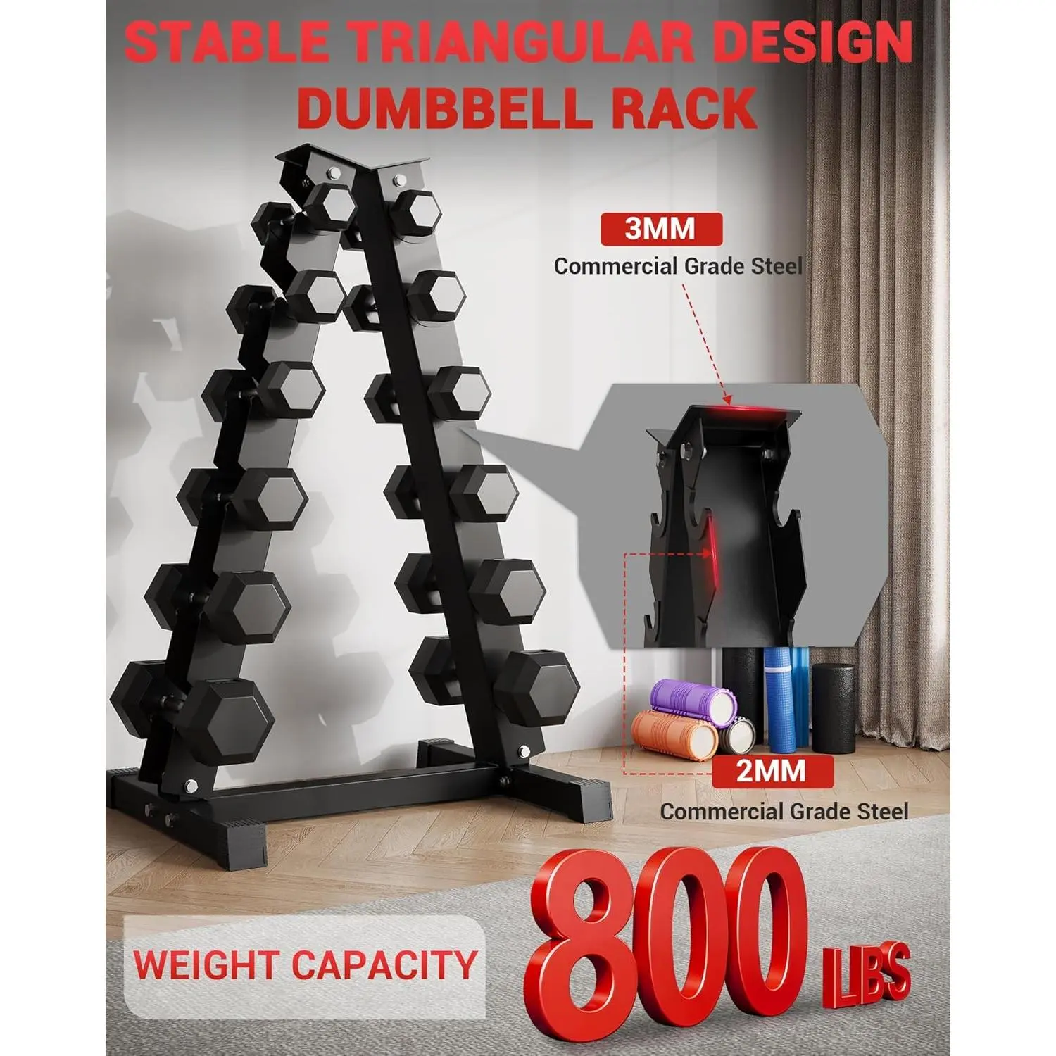 ·1000 LB WEIGHT CAPACITY: This 3-tier dumbbell rack supports up to 1000 pounds, providing ample storage space for up to 10 pairs of 5-50LB hex dumbbells. Crafted from commercial-grade carbon steel, this sturdy rack ensures zero bending, even under heavy loads.