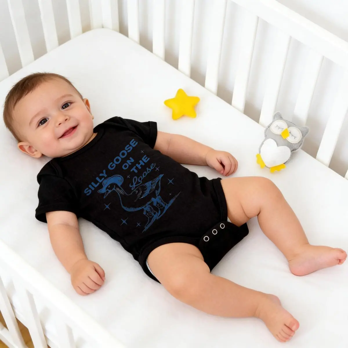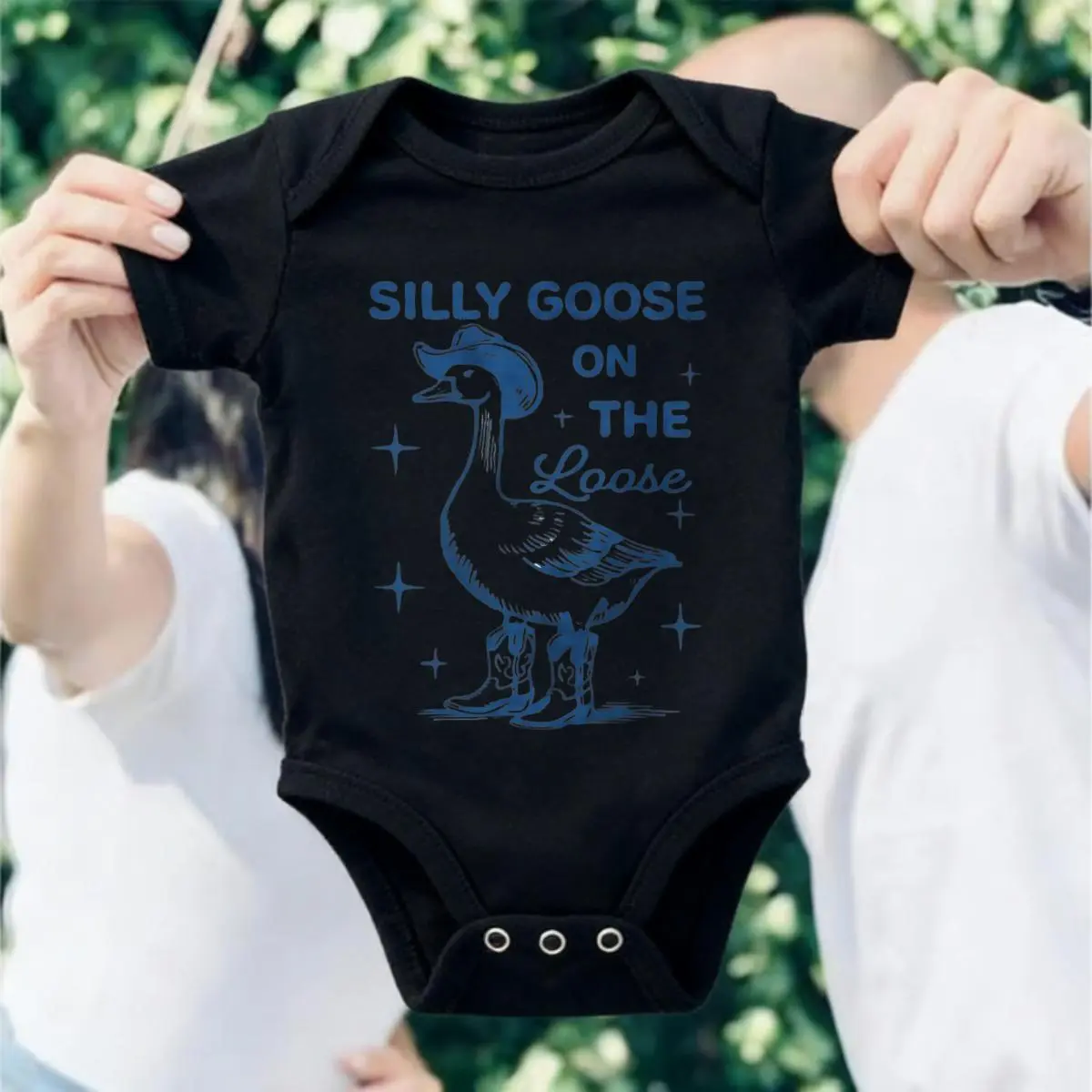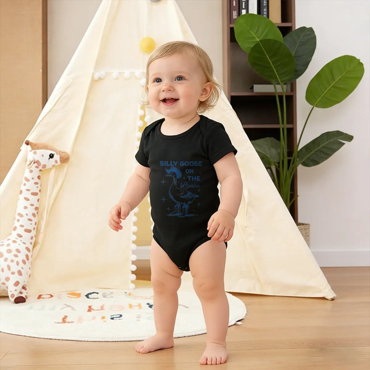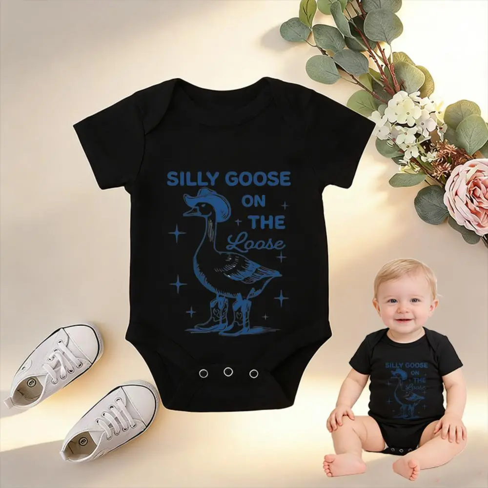 Baby Bodysuit Silly Goose On The Loose Print 100% Pure Cotton Non-Irritating Snap Closure Breathable Perfect For Gifting & Everyday
