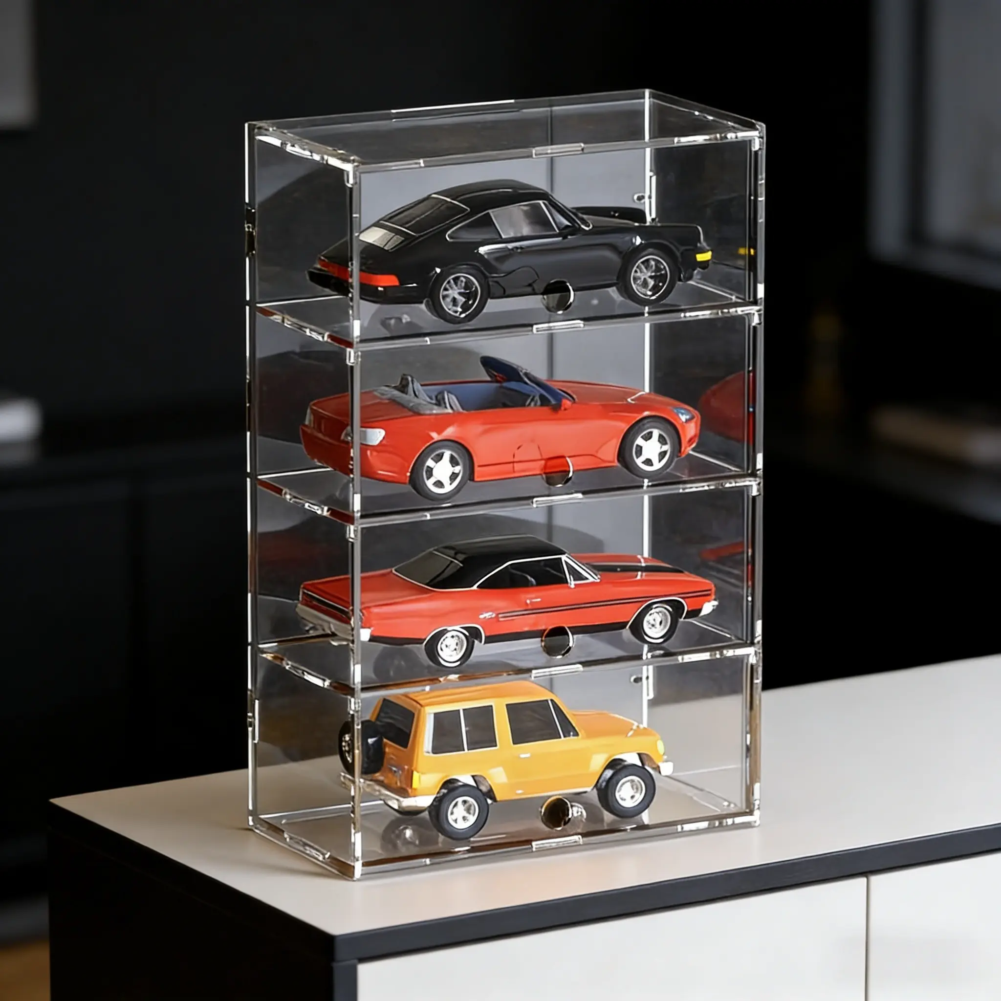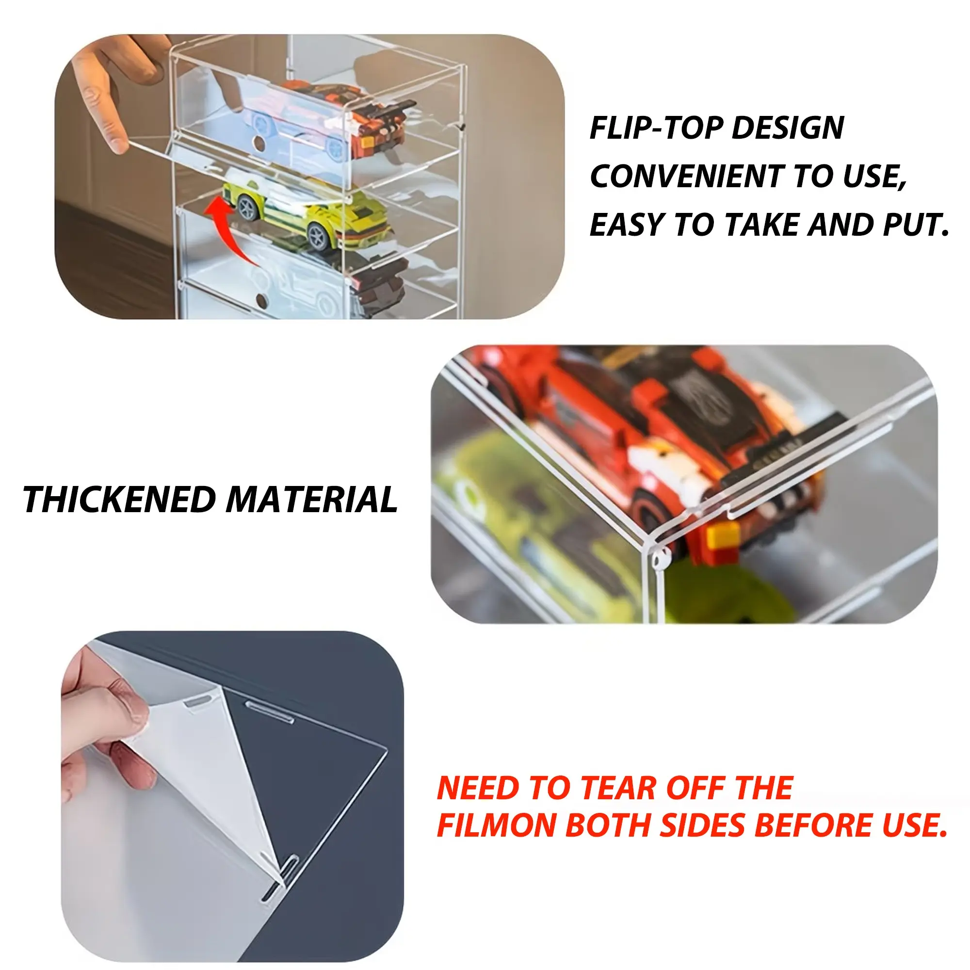 Car Model Display Box, Detachable Acrylic Storage Case, 2/3/4/5/6 Layers, Transparent Flip Cover, Easy Installation, Minimalist Design
