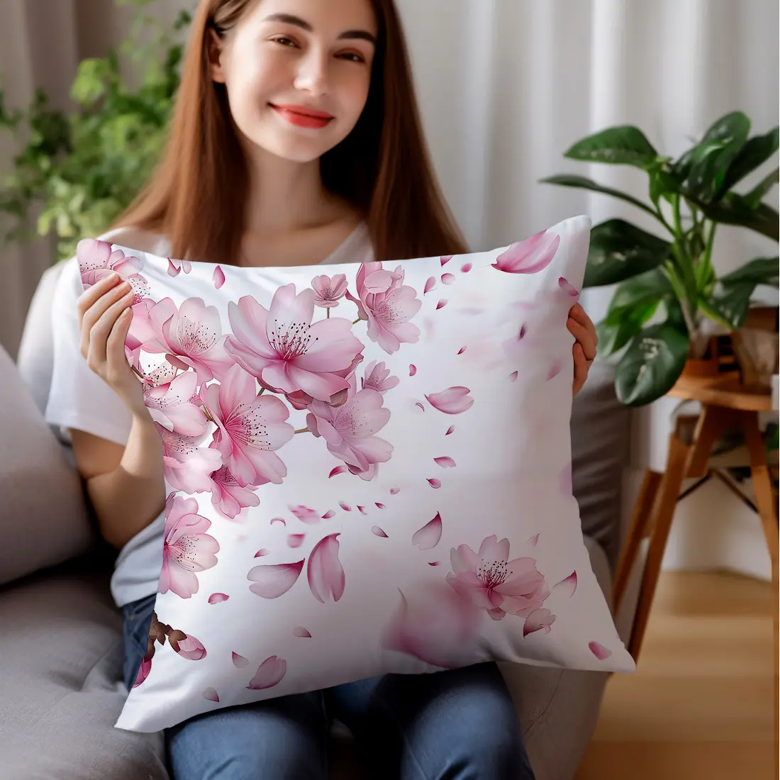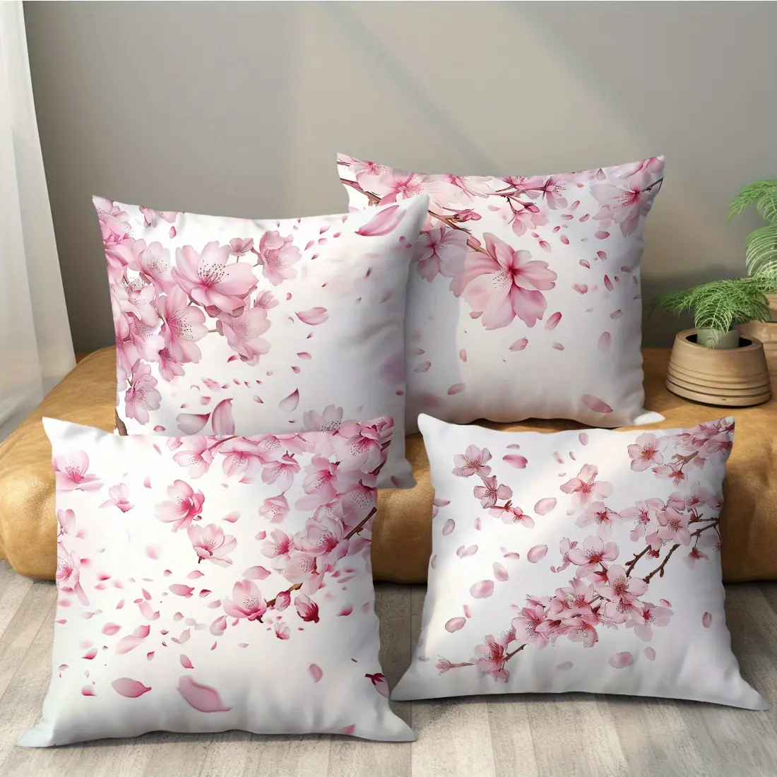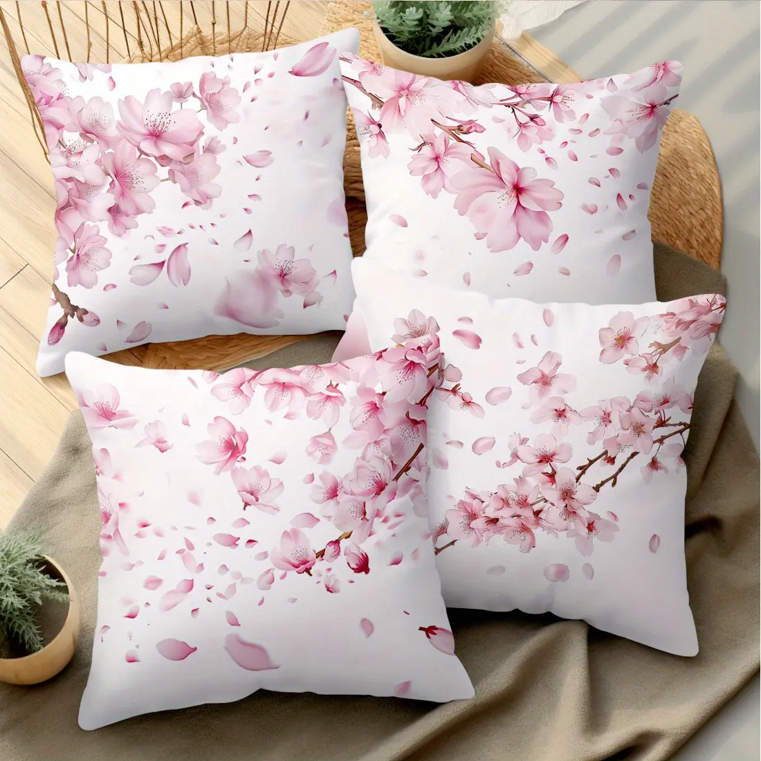Blossom Pillow Covers , Soft Velvet Cushion Covers, Floral Decorative Throw Pillow Cases for Sofa Living Room Decor