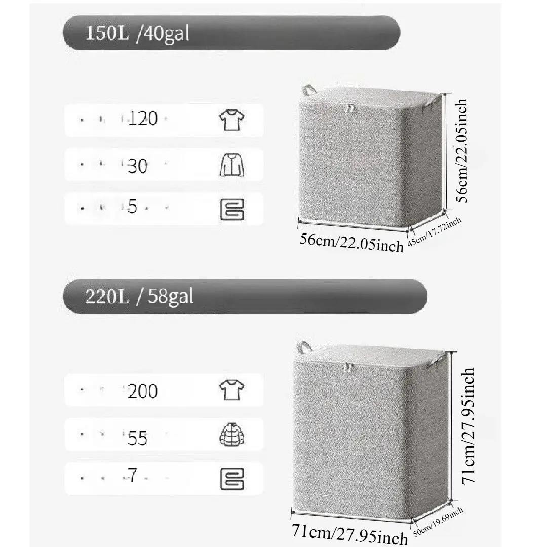 Max 58gal Home Luggage Packing Bag, Nonwoven Fabric Storage Box, Zipper Closure, Large Capacity for Clothes, Bedding, Moving, Bedroom