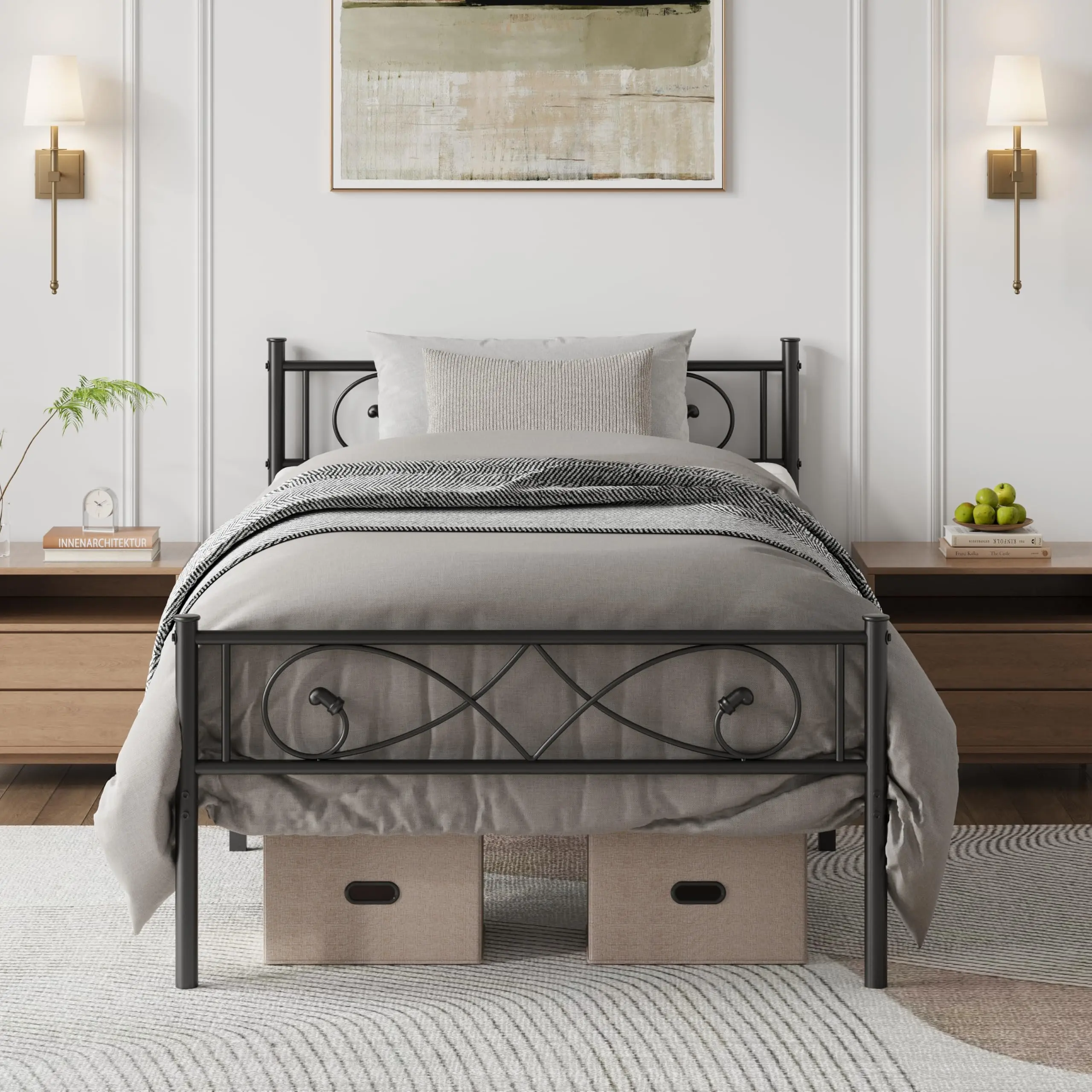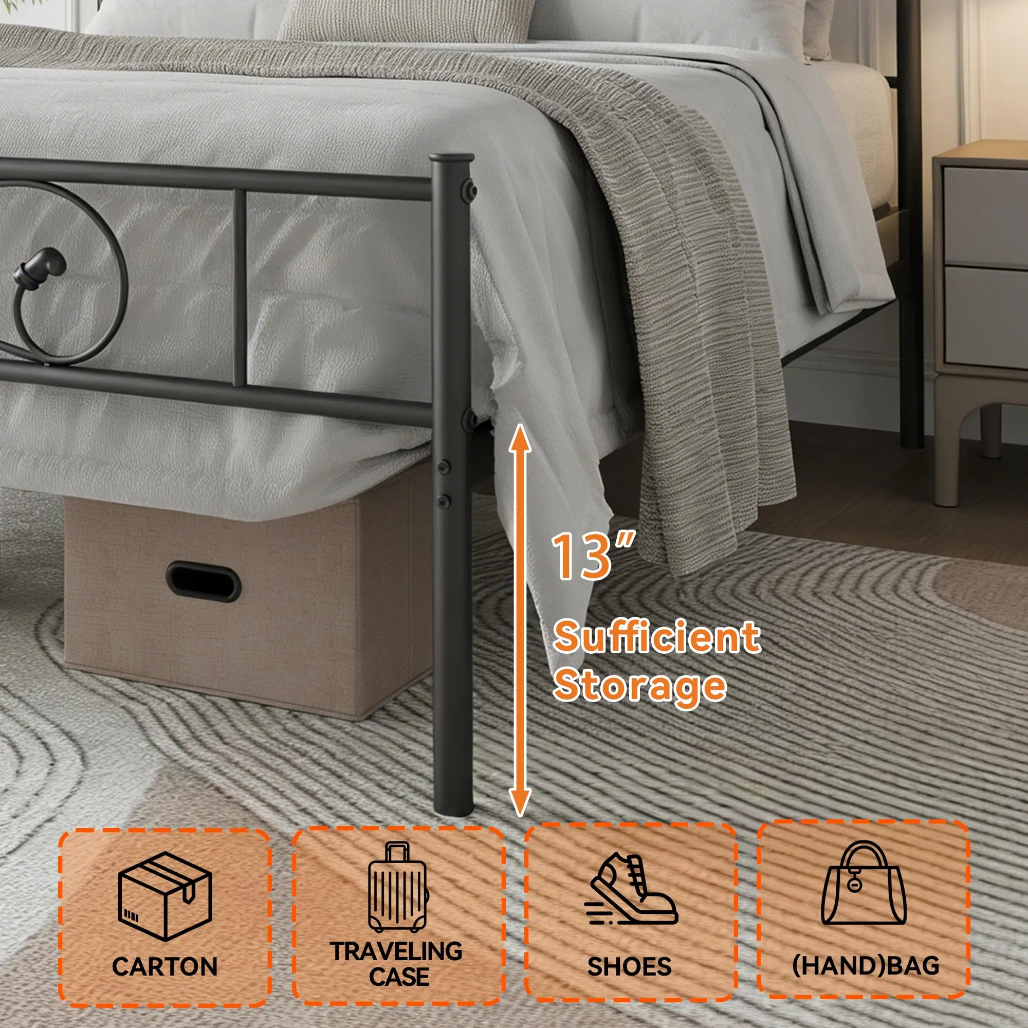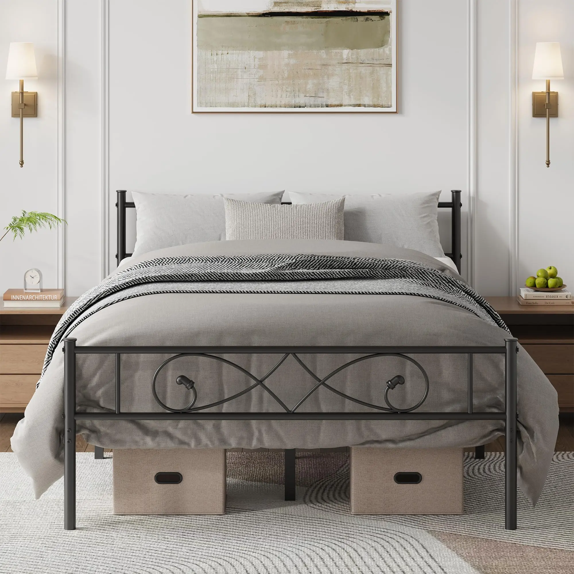 Full/Twin/Queen/King Metal Platform Bed Frame with Headboard & Footboard – No Box Spring Needed, Underbed Storage, Easy Assembly, Black