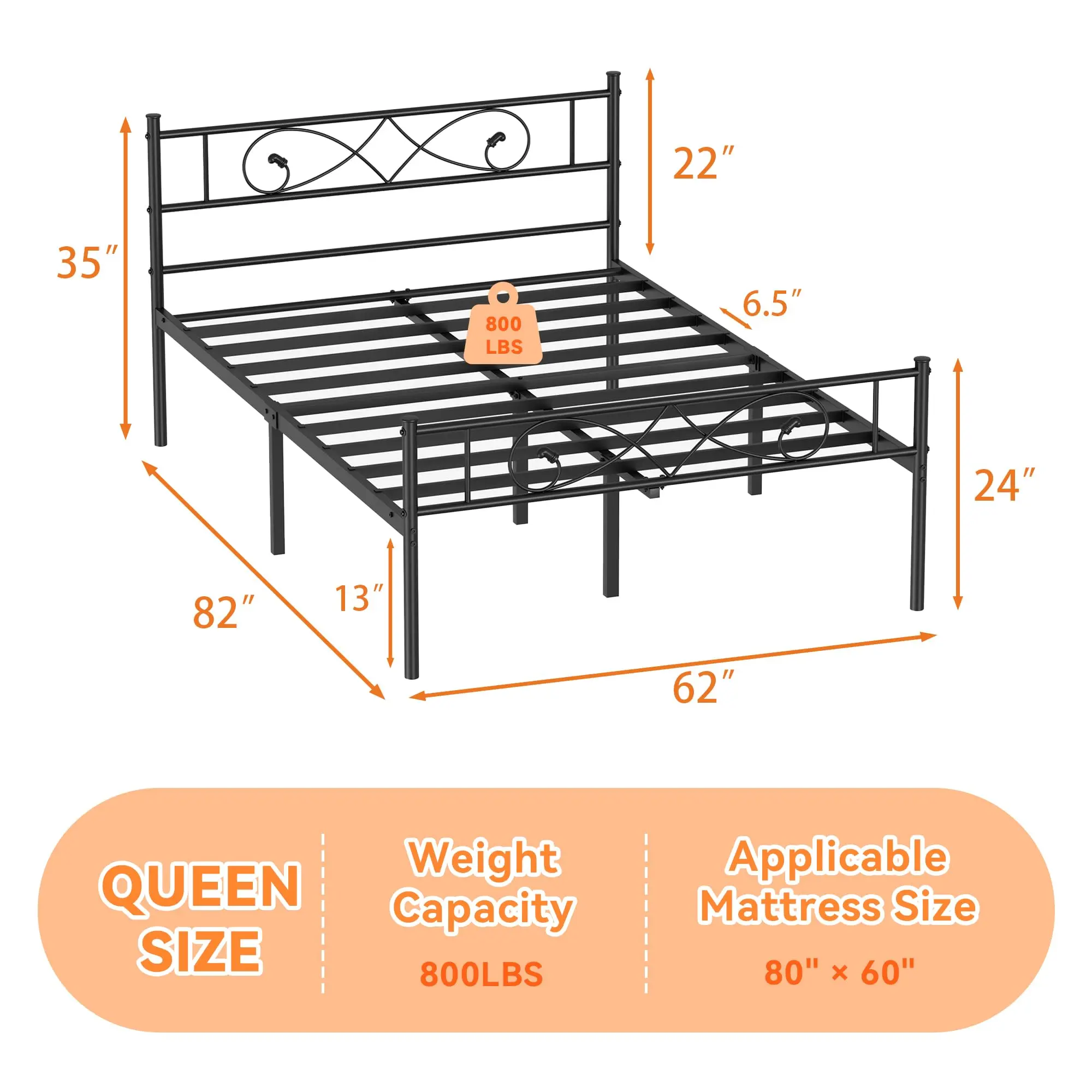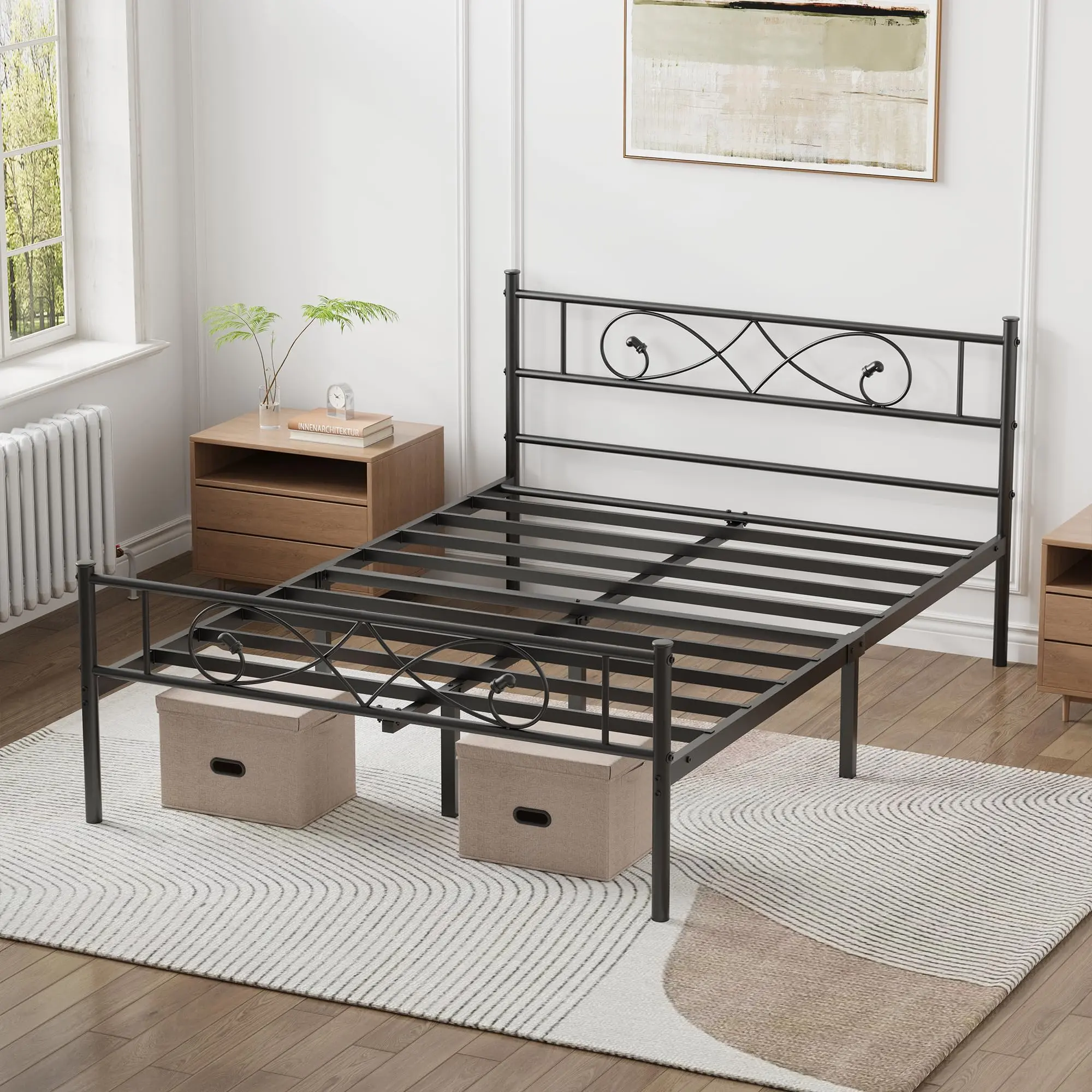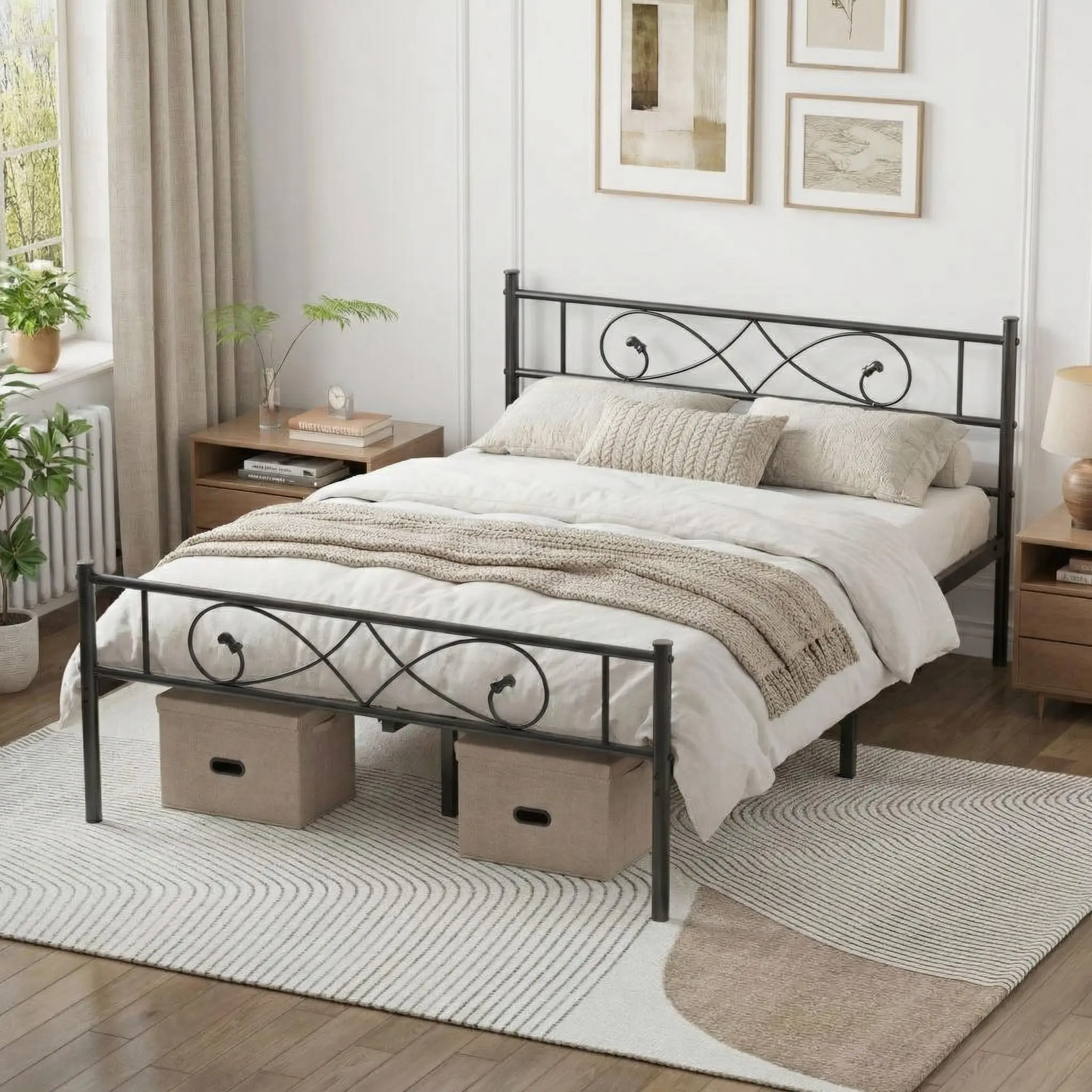 Upgrade your bedroom with this sturdy metal platform bed frame, crafted with a durable metal frame for long‑lasting support and stability. The elegant black headboard and footboard enhance your bedroom decor while providing structural reinforcement.