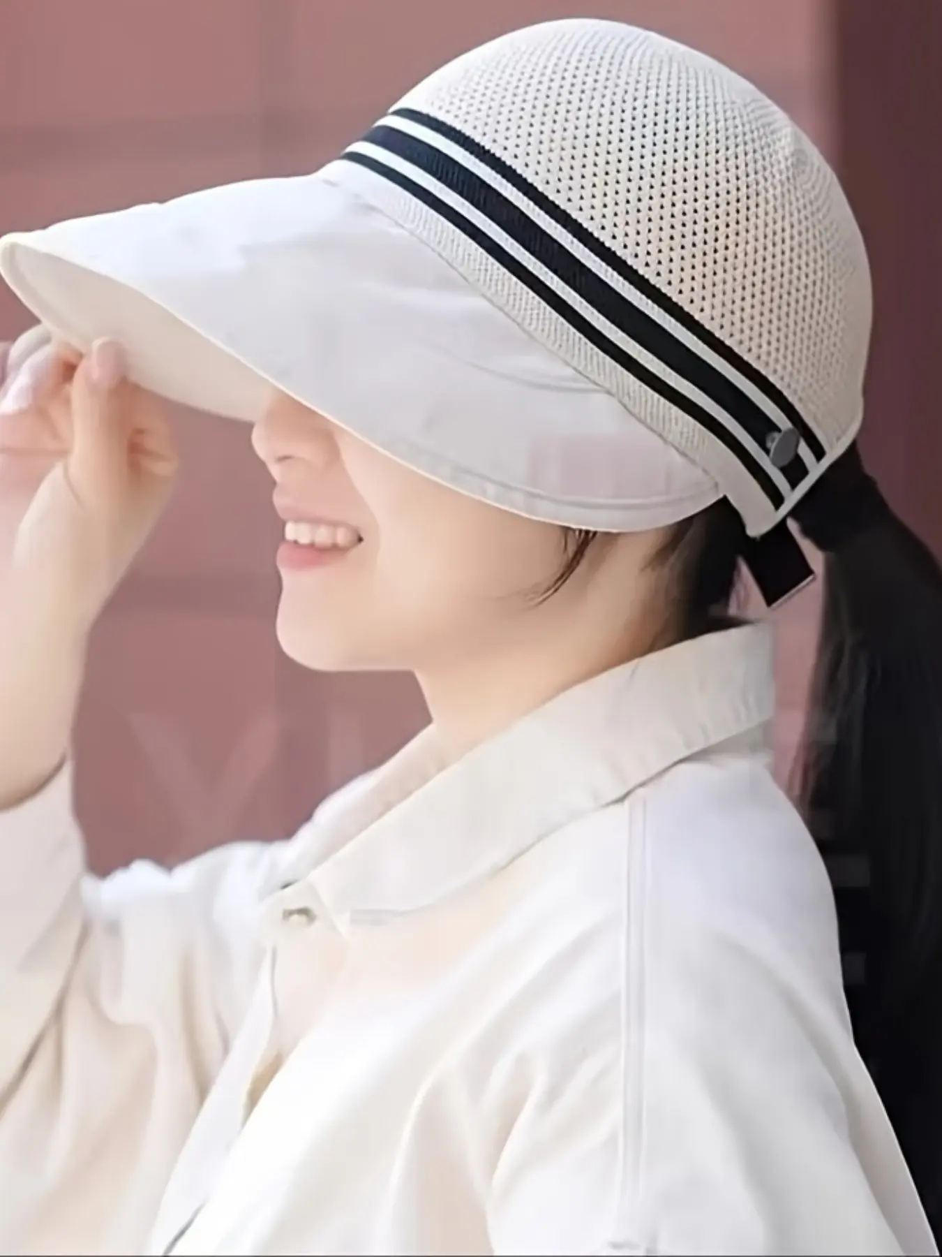 5. Summer New Long Brim Mesh Fisherman Hat, Breathable Duckbill Hollow Out Design, Fashionable Bucket Hat for Ponytail, Trendy Summer Accessory