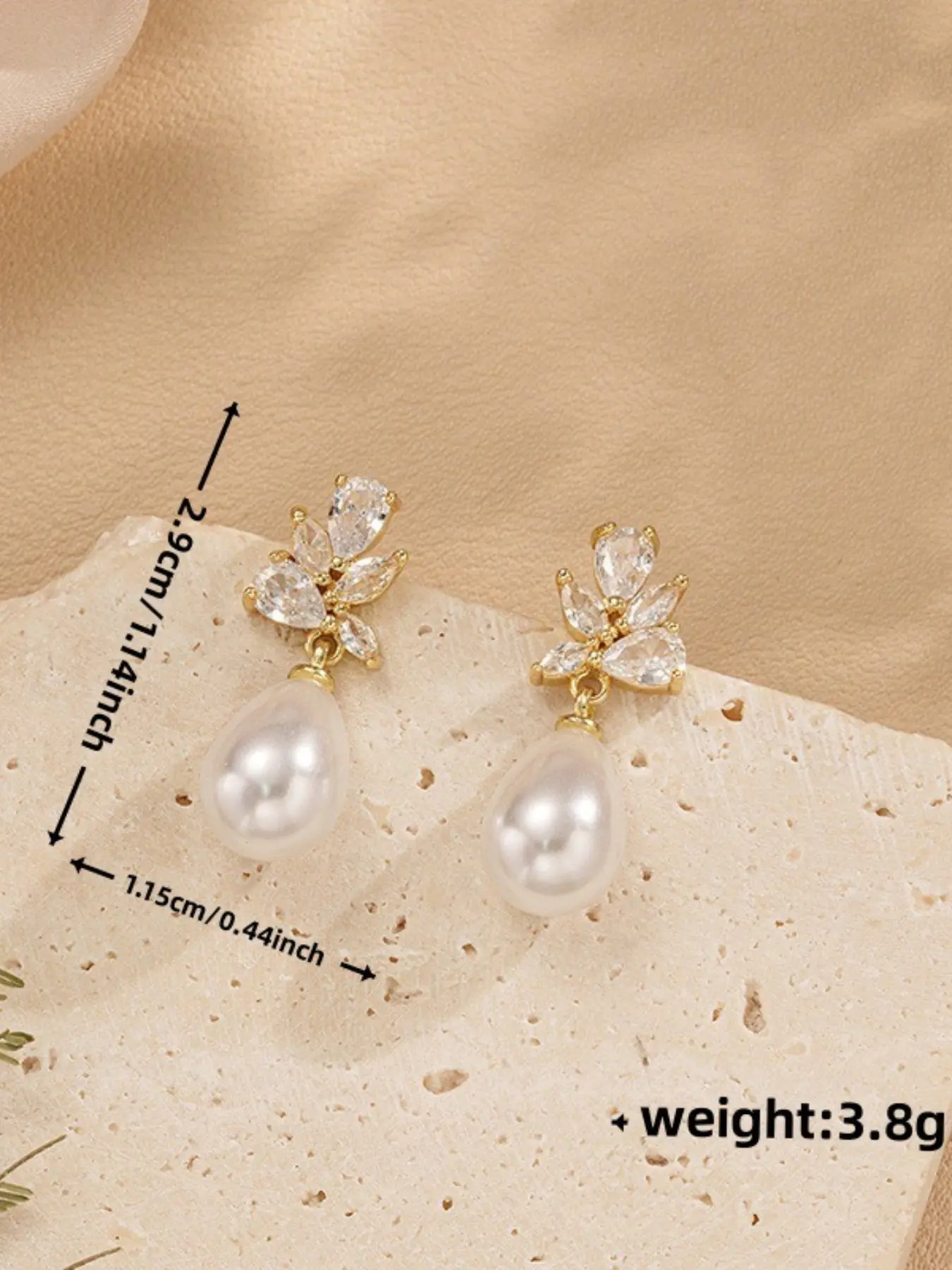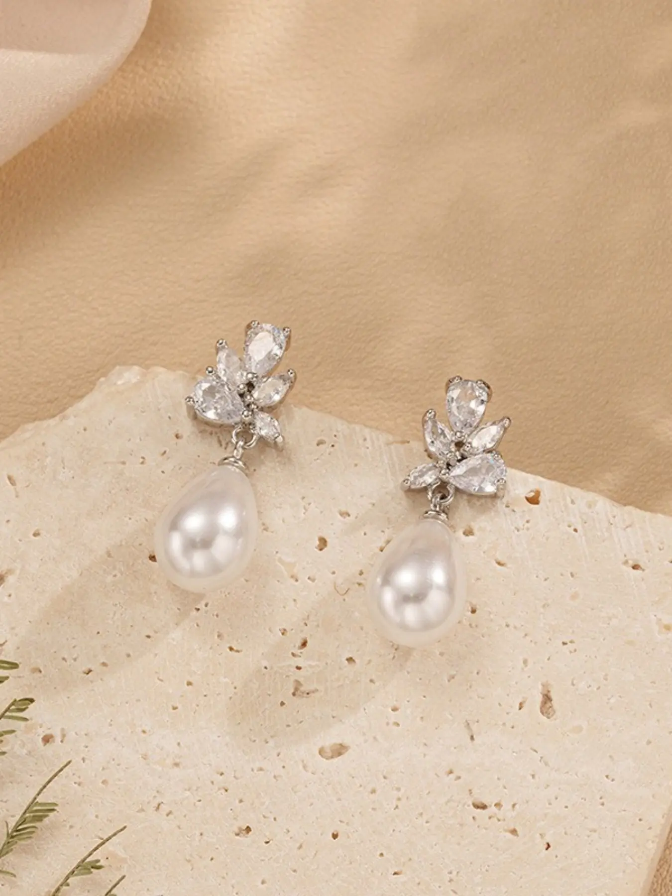 Pearl and Zirconia Pendant Earrings—Perfect for everyday wear, weddings, formal events, and bridal jewelry—An ideal gift for Mother’s Day, anniversaries, and birthdays
