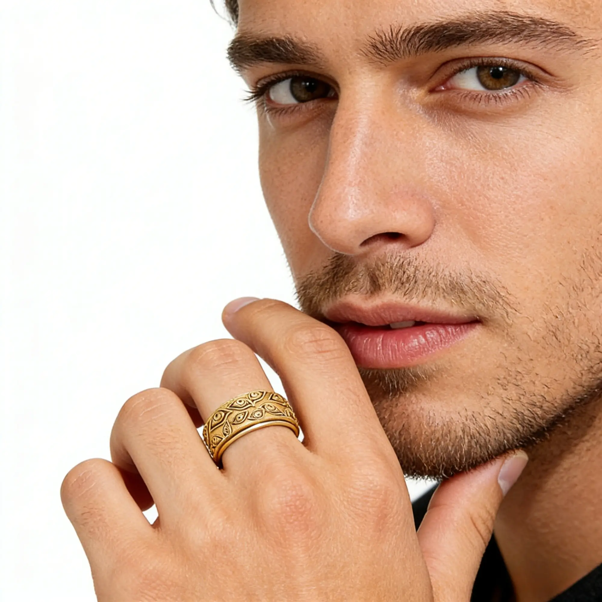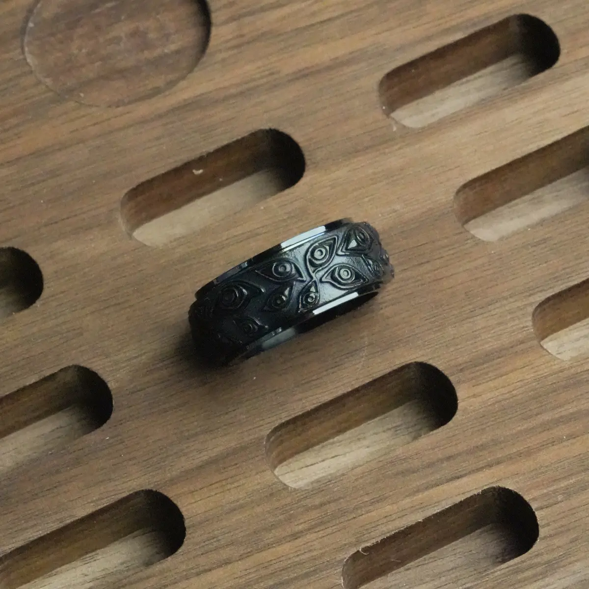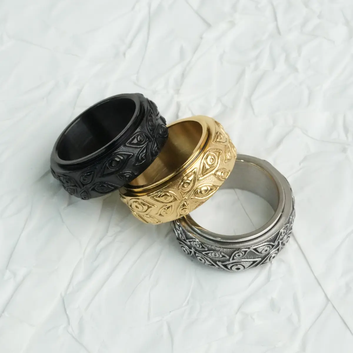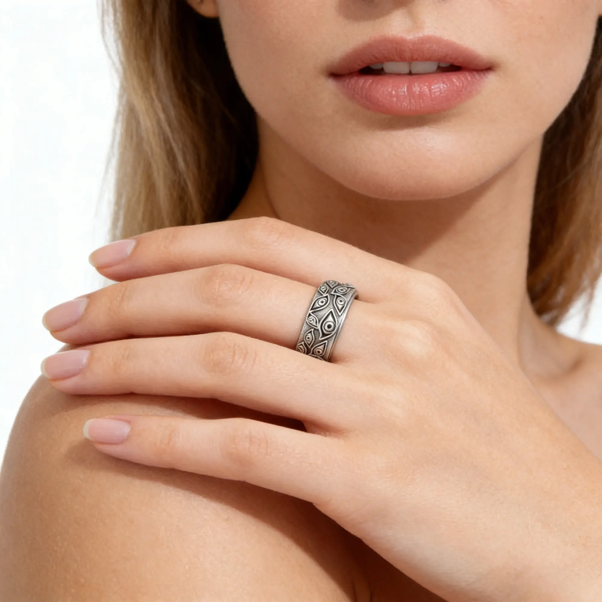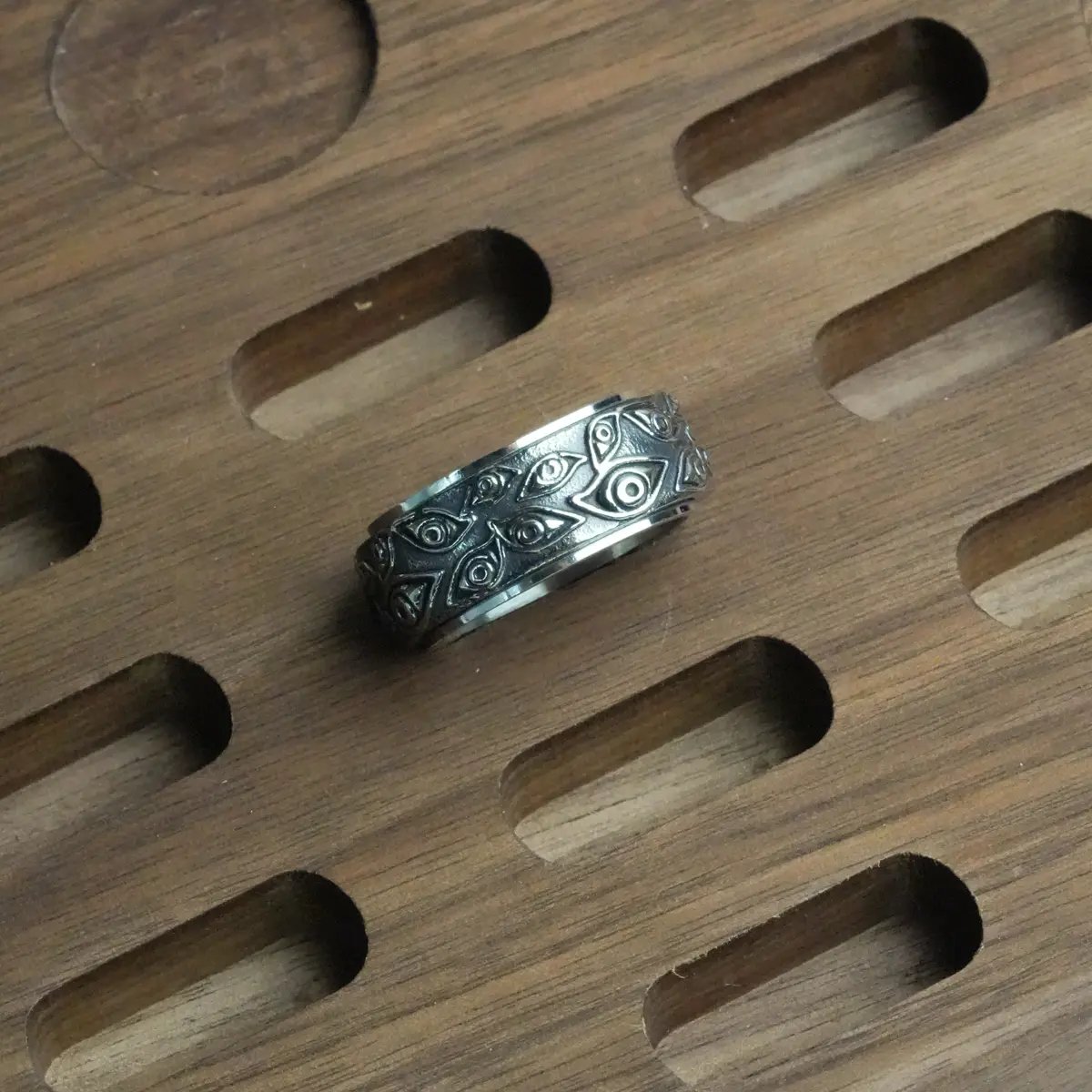 Bold & Symbolic Design: Features a striking 3D-carved All-Seeing Eye on a wide band, with a unique shape that stands out.