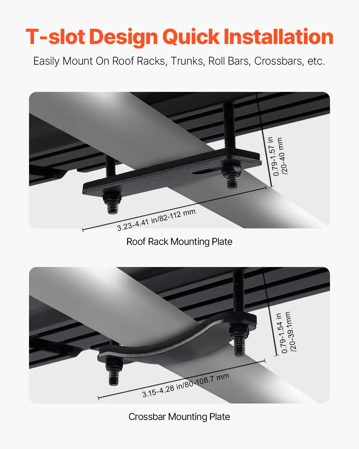 Flexible Mounting Design: The t-slot design in the water tank allows secure installation on roof racks, roll bars, trunks, or crossbars. It includes mounting plates for both crossbars and roof racks for added stability.