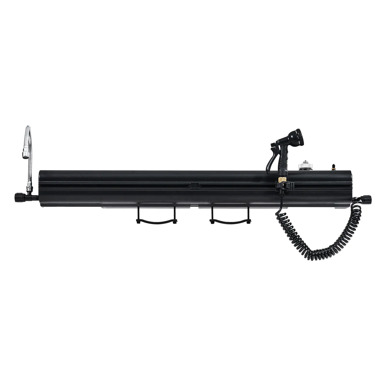 Versatile Nozzle Options: Equipped with showerhead and spray nozzles, this roof rack water tank is attachable to a 4m telescopic hose for wide-range, long-distance cleaning. It includes a faucet extender with adjustable angles for a refreshing post-activity outdoor shower.