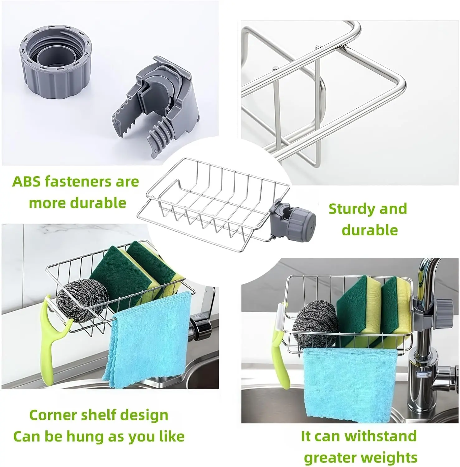 ·MORE CONVENIENT TO DISHWASH - Perfect to hold sponge, soap, brush, towel, more convenient for you during washing dishes. Unique outer rack design, it creates a space for your kitchen towel, very functional.