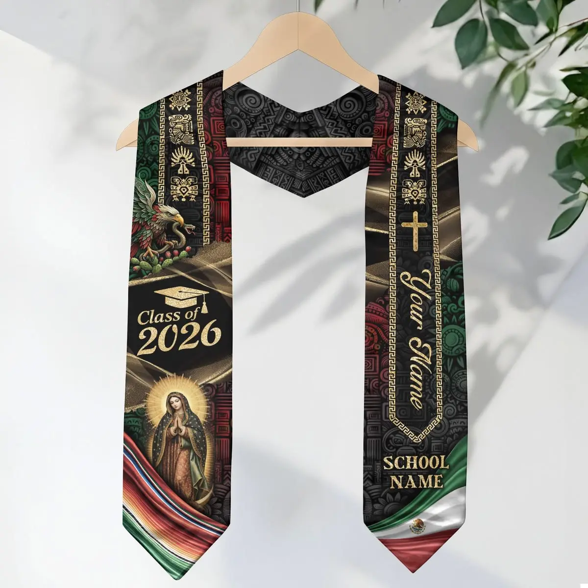 Personalized Mexican Graduation Stole 2026, Mexican Flag Graduation Sash, Mexico Pattern Stole, Custom Name & School Sash Senior Grad Gift