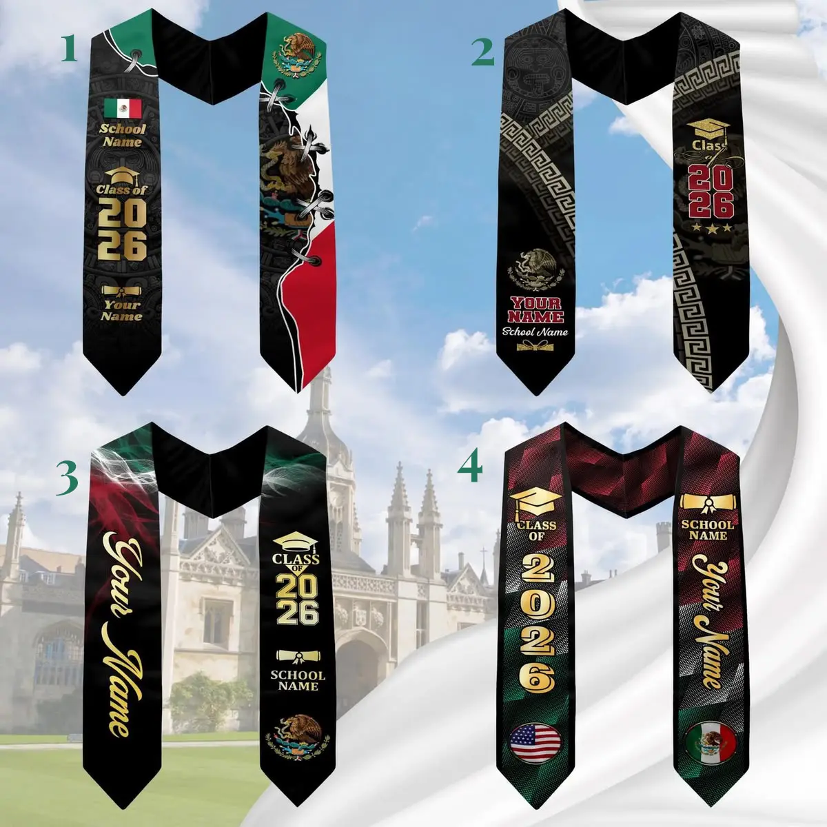 Custom Mexican American Flag Graduation Sash 2026 Mexico Grad Stole