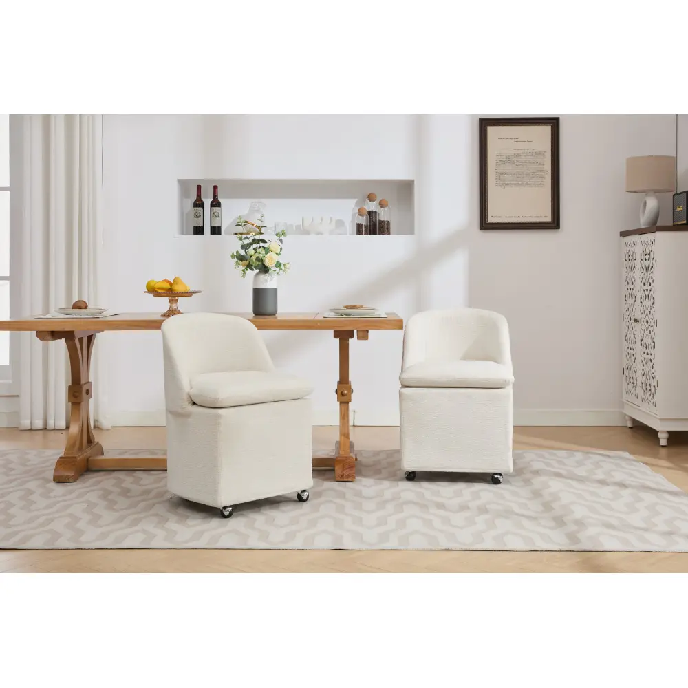 Set of 2 Chenille Fabric Dining Chairs With Universal Wheels,Beige