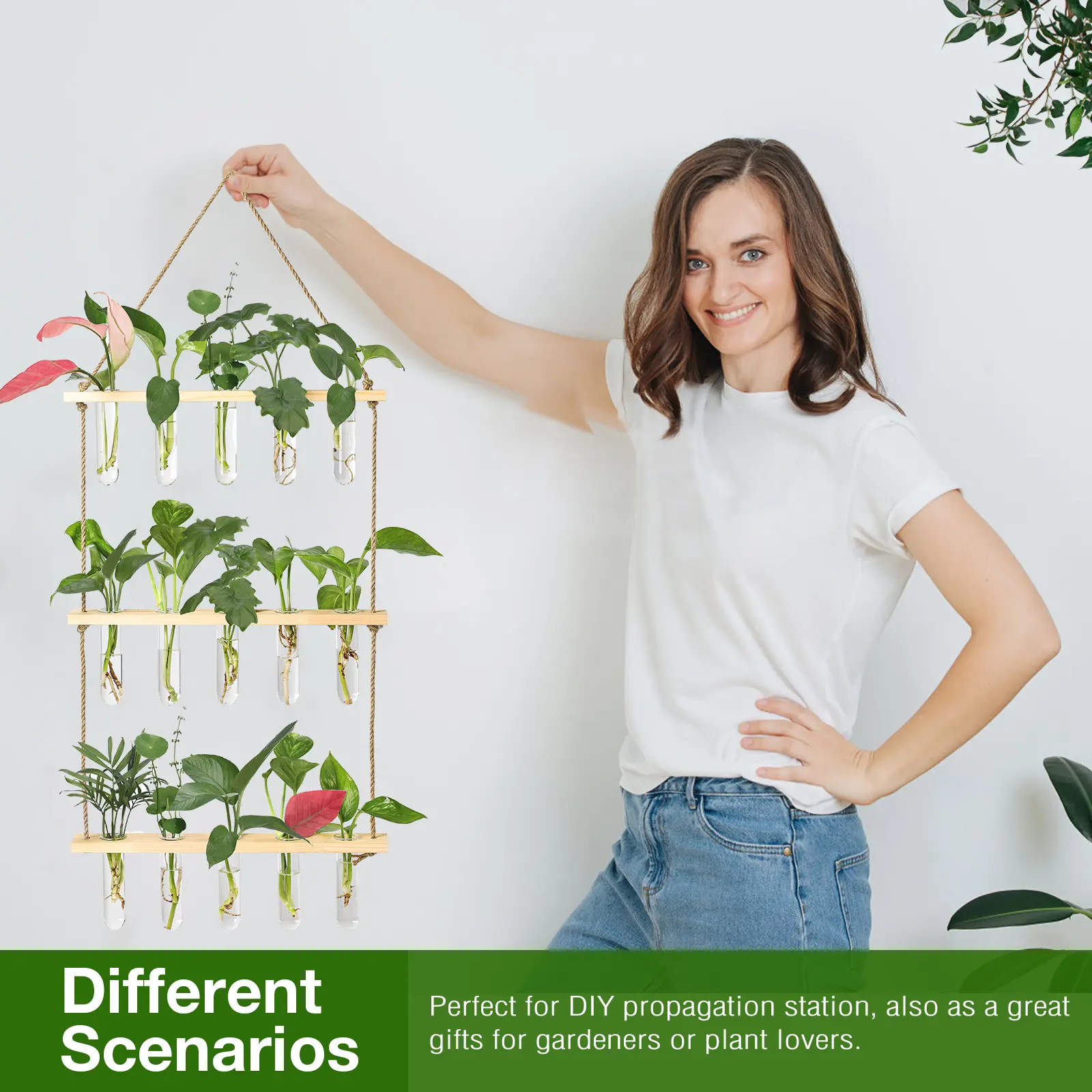 XXXFLOWER Extra Large Wooden Hanging Propagation Tubes 15 Vases Ready to Gift Indoor Plant Station Set for Easy Propagation & Decor