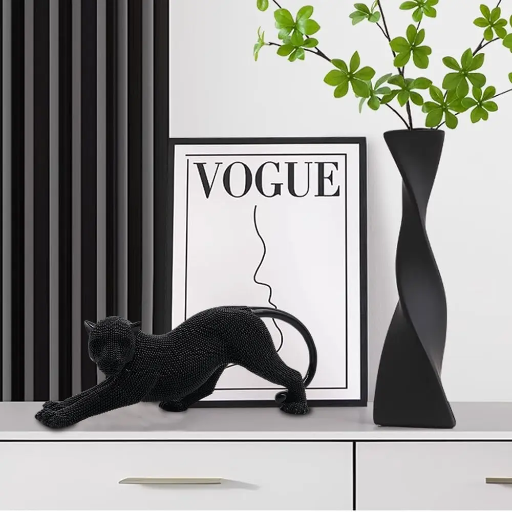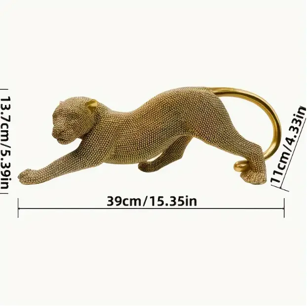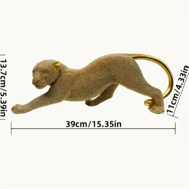 The star of the set is our beaded resin leopard: Crafted from premium resin with hand-inlaid glittering beads and a shimmering finish, this stunning figurine comes in 3 iconic colors: Black, Gold, and Silver. Its dynamic stretching pose is revered as a prosperity totem, believed to attract wealth, boost career success, and bring positive energy to your space. At 15 * 18 * 44cm, it’s the perfect statement piece for your living room, entryway, or office.