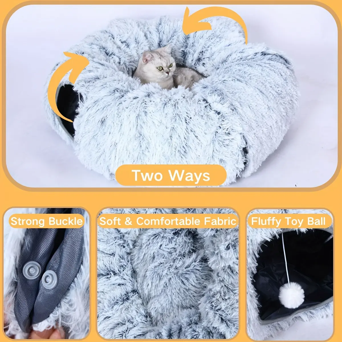 Christmas Gift Cat Tunnel with Cat Bed, Suitable for Indoor Cats, Soft Plush Peeping Cat Hole, Donut Tunnel, Multi-functional Cat Amusement Park Toy Hiding Place, Suitable for Small, Medium And Large Cats, Kittens, Rabbits, with A Pet Scarf